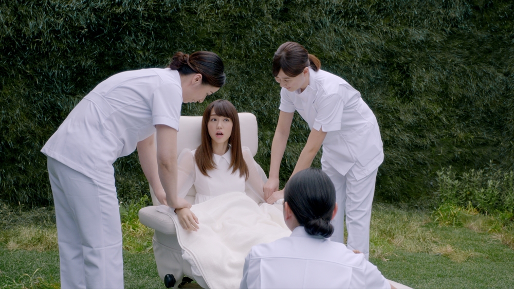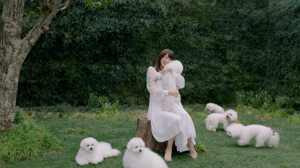 撮影用に特注に制作された巨大プチプチを無邪気につぶしていったり、白くてふわふわした沢山のモフモフ犬に満面の笑みをみせたり、さらに、3人の女性にモミモミされて夢見心地になってしまうなど…桐谷美玲さんの様々な表情ややすらぐ様子が描かれ、とても癒される内容に仕上がっている。