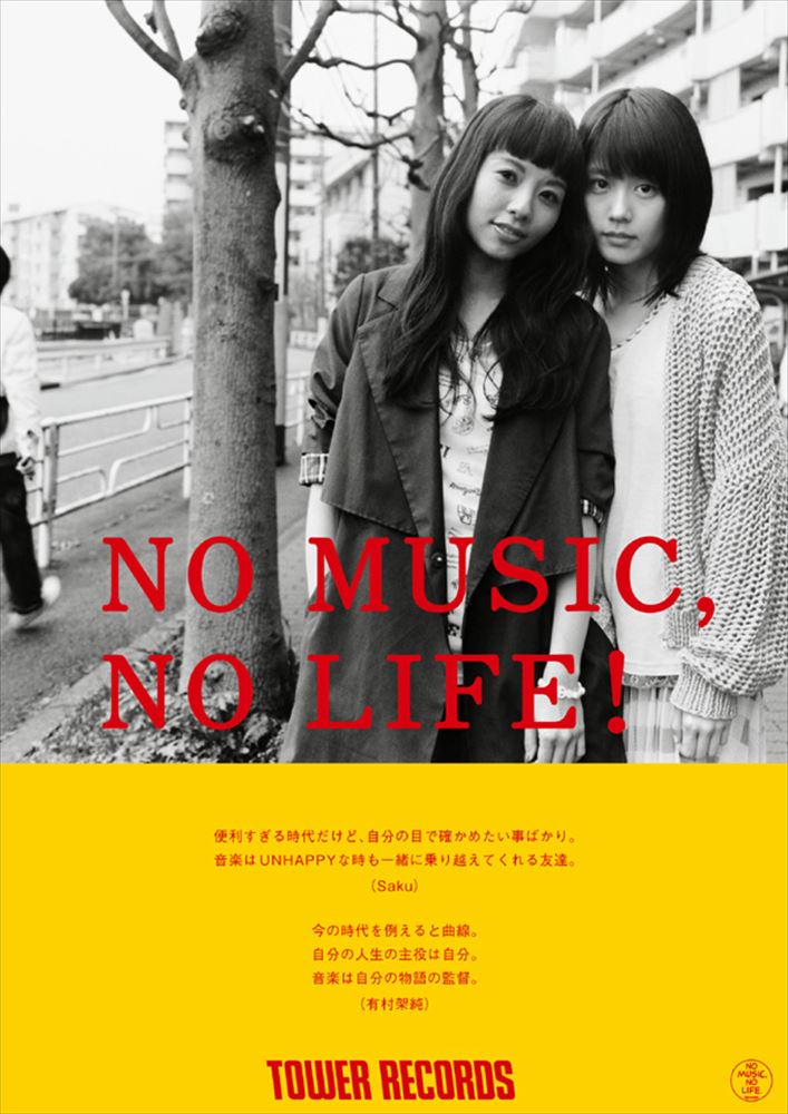 4月23日より、タワーレコードの意見広告新シリーズ「NO MUSIC,NO LIFE!」ポスターに歌手のSakuさんと、女優の有村架純さんが登場する。