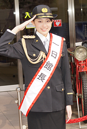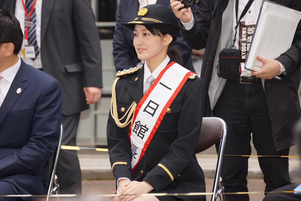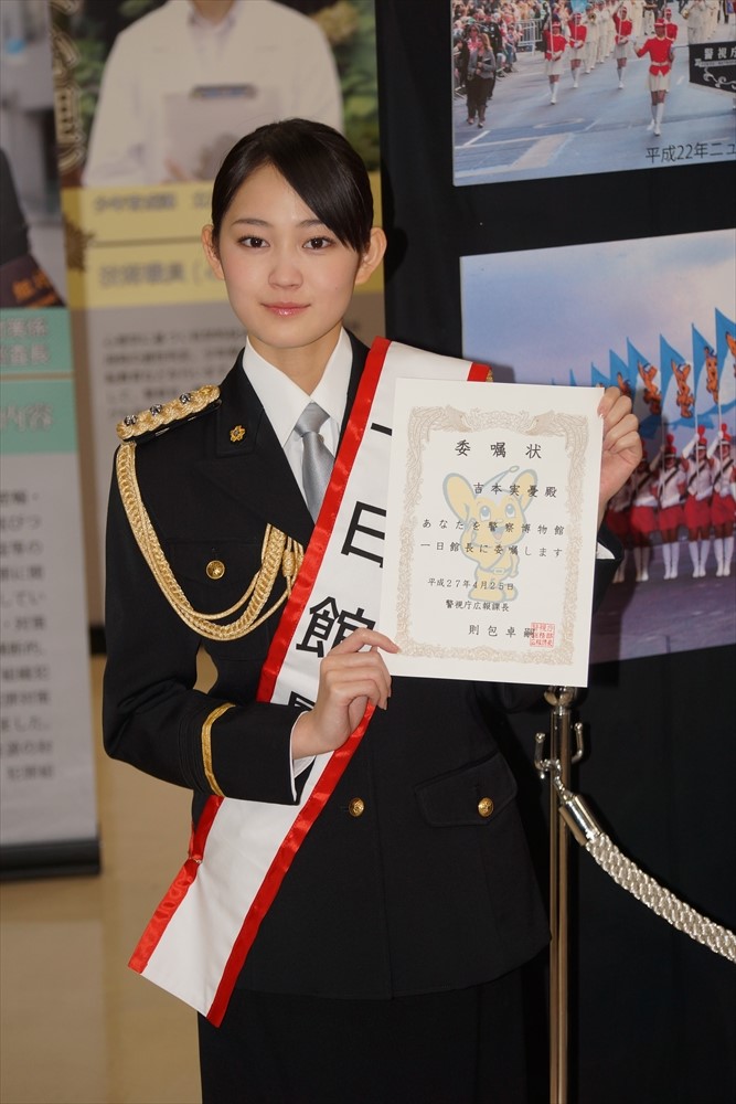 4月25日、東京・京橋の警察博物館の1日館長に女優の吉本実憂さんが就任し委嘱状が授与された。