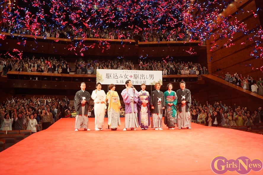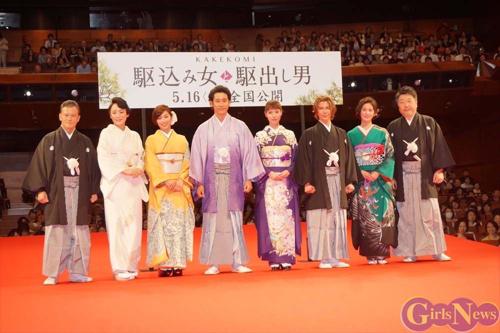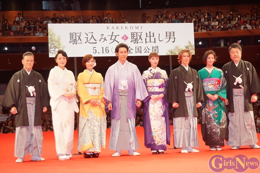 4月27日、映画「駆込み女と駆出し男」プレミア試写会が東京国際フォーラムで行われ、大泉洋、戸田恵梨香、内山理名、陽月華、神野三鈴、武田真治、橋本じゅん、原田眞人監督が着物姿で舞台挨拶に登壇した。