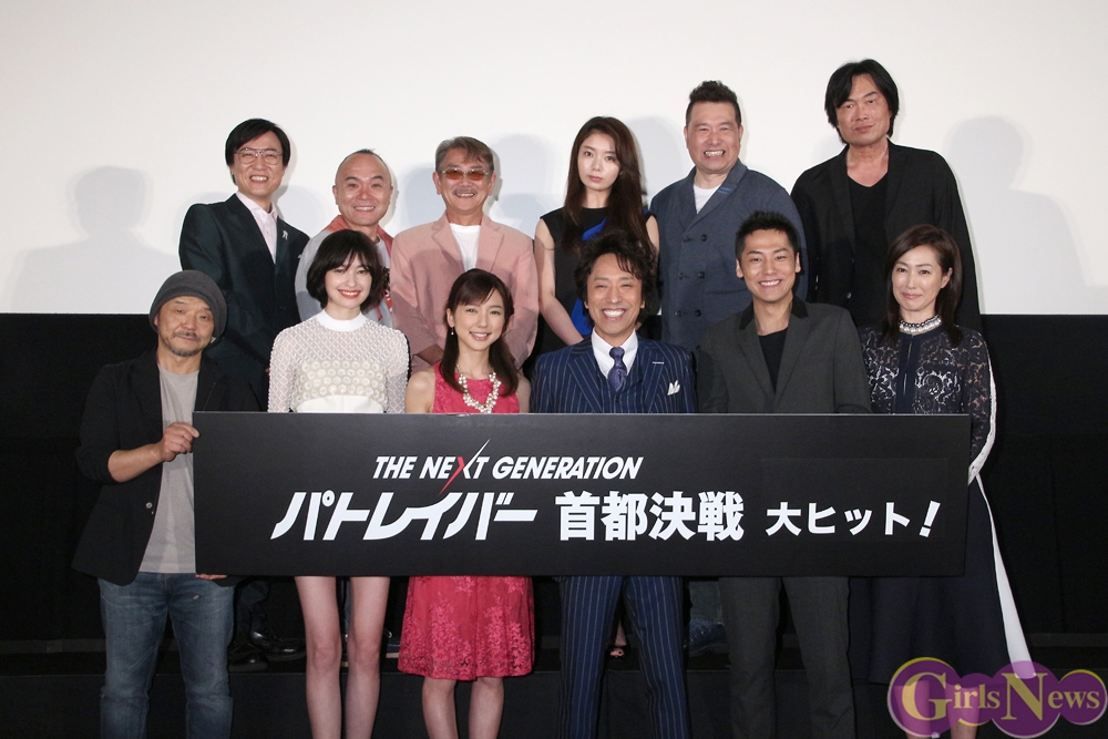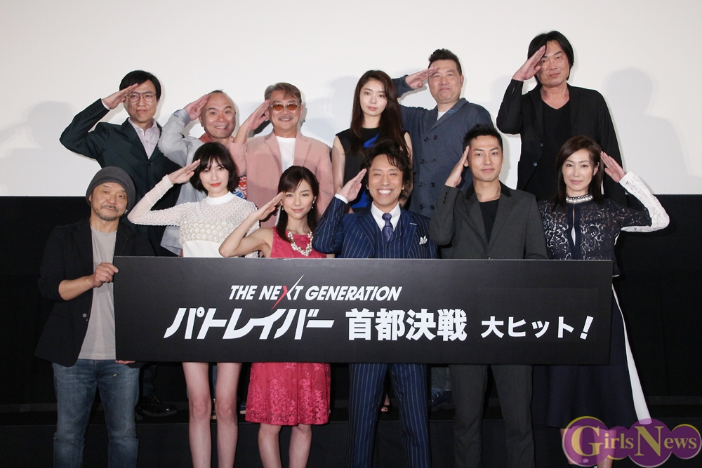 5月1日、映画「THE NEXT GENERATION パトレイバー 首都決戦」が公開初日を迎え、新宿ピカデリーで行われた舞台挨拶に、筧利夫、真野恵里菜、福士誠治、太田莉菜ら警視庁特車二課のメンバー9名と、森カンナ、高島礼子、そして押井守監督が出席した。