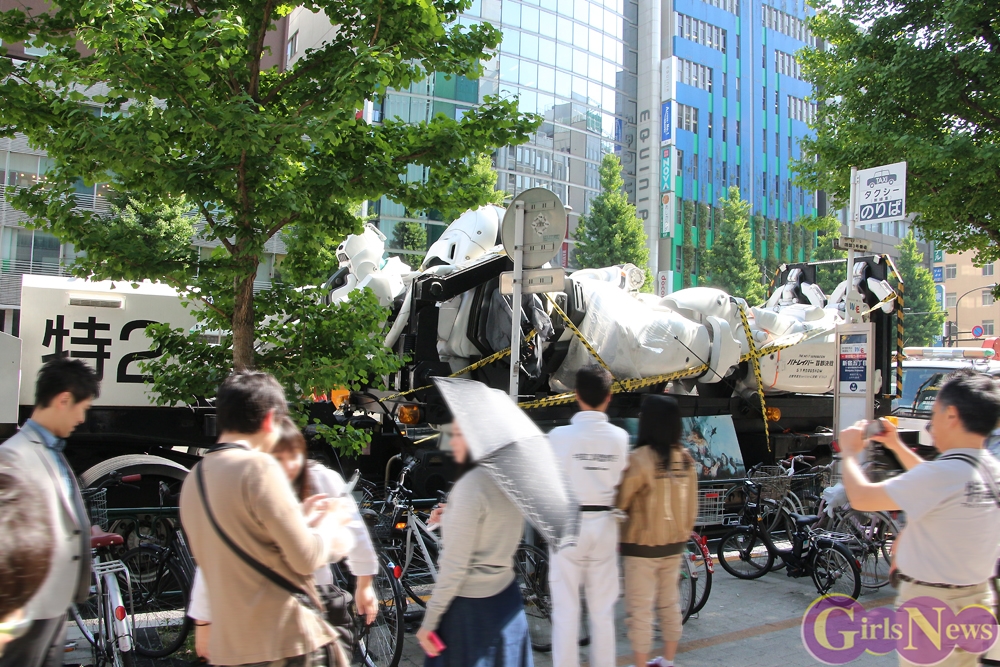 舞台挨拶の上映回の前には、全国をデッキアップイベントで周ってきた実物大イングラムが劇場前に横たわり、道行く人の関心を集めていた。5月17日の朝8時より行われる警視庁庁舎前の「交通事故防止ツーリング出発式」でもデッキアップイベントが開催され、女性ライダー隊の出発を見送る。