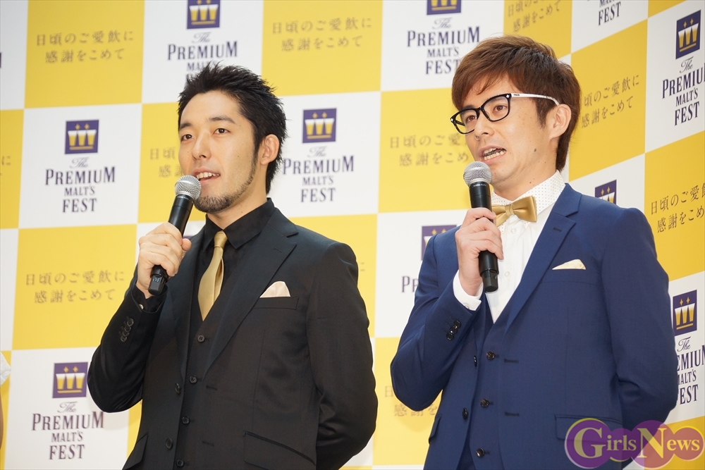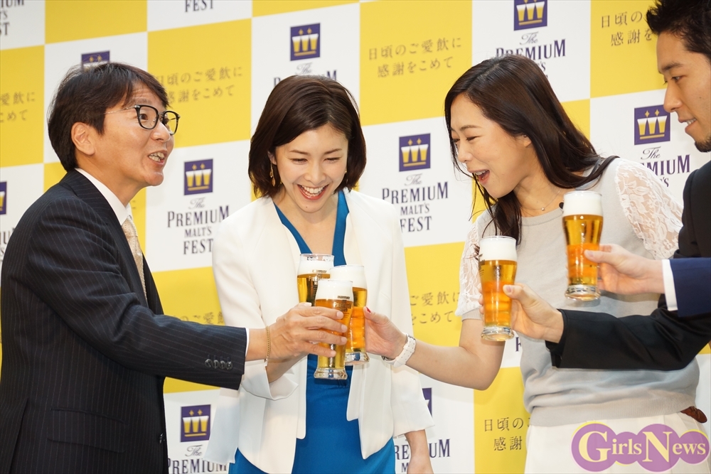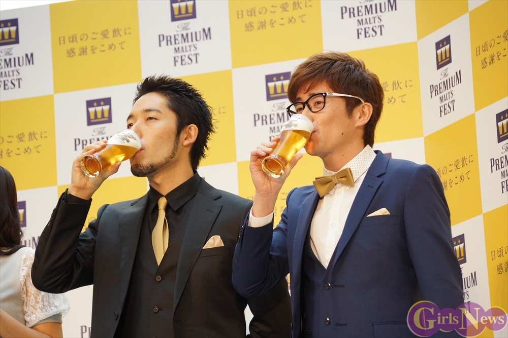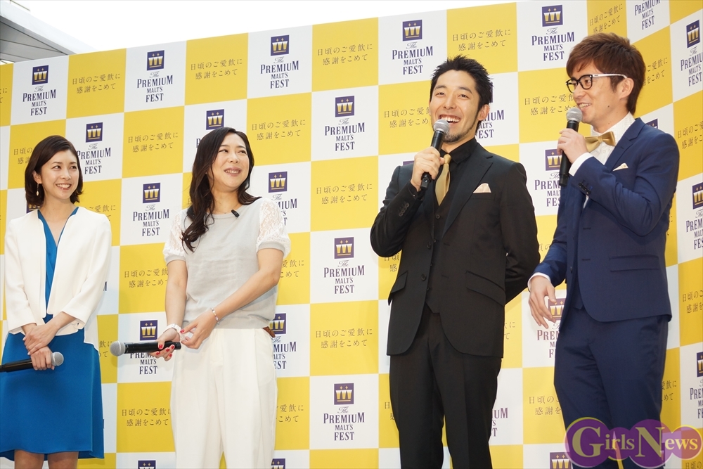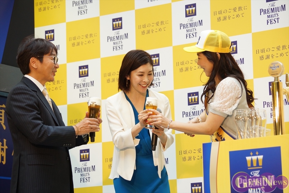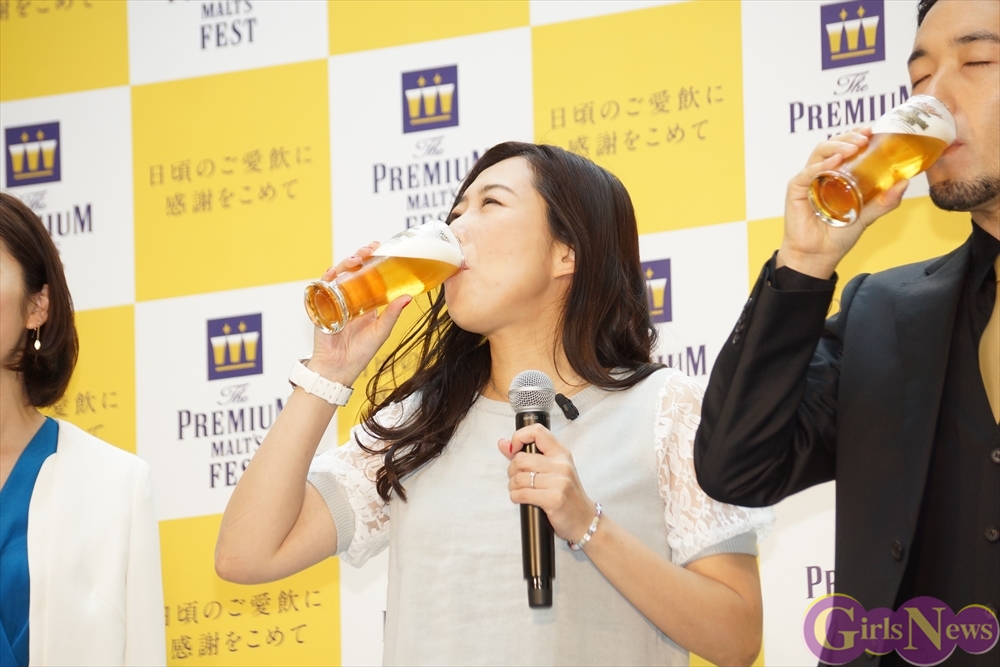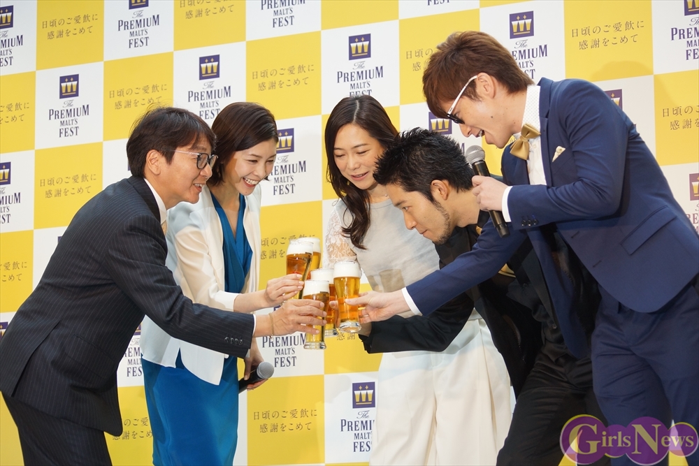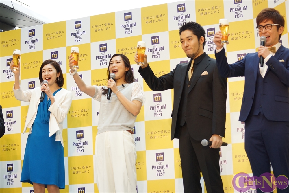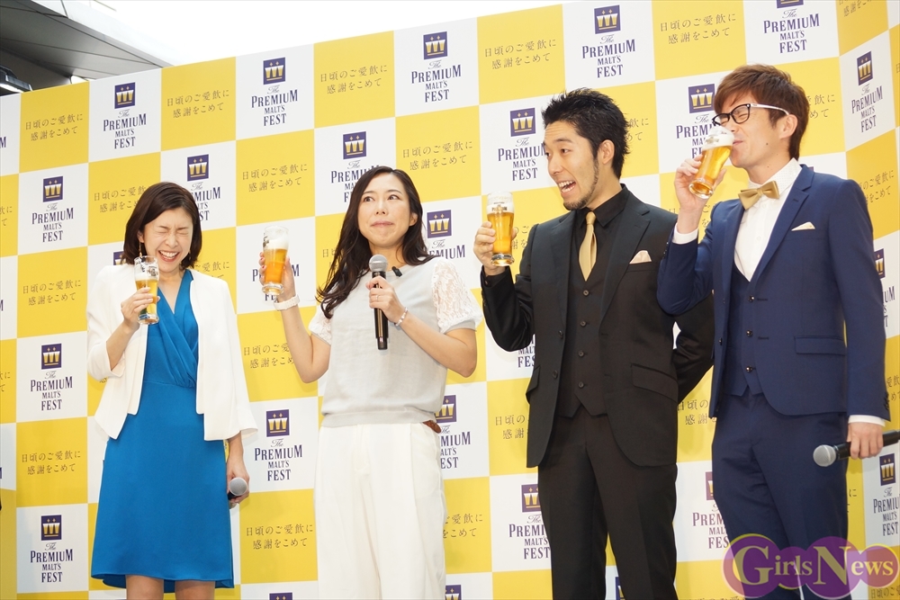 プレモルが注がれたグラスを持ち、早速乾杯のコールで味わうとプレモルトークがスタート。