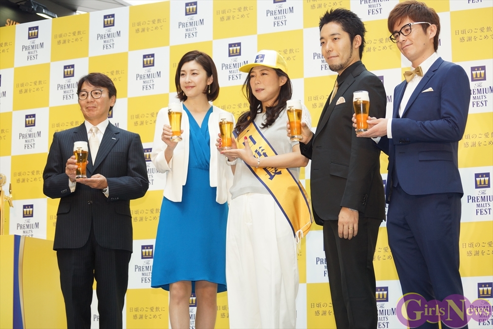 4月30日、5種類の「ザ・プレミアム・モルツ」を体験できるイベント「ザ・プレミアム・モルツフェスト」オープニングセレモニーが六本木ヒルズ大屋根プラザで行われ、TV-CMに起用されている女優の竹内結子さんが登場。さらに「ザ・プレミアム・モルツフェスト」の参加第一号として、椿鬼奴さんとオリエンタルラジオの2人も駆けつけた。