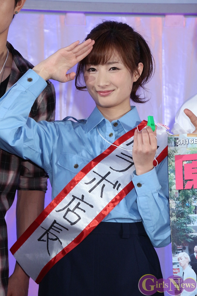 武田梨奈さんは劇中の婦人警官のコスチュームで、映画で共演する日韓シャッフルのボーイズユニット「BEE SHUFFLE」と共に会場内のステージに登場し、得意の板割りを披露するなどして、場内のマナーと映画の宣伝をアピールした。