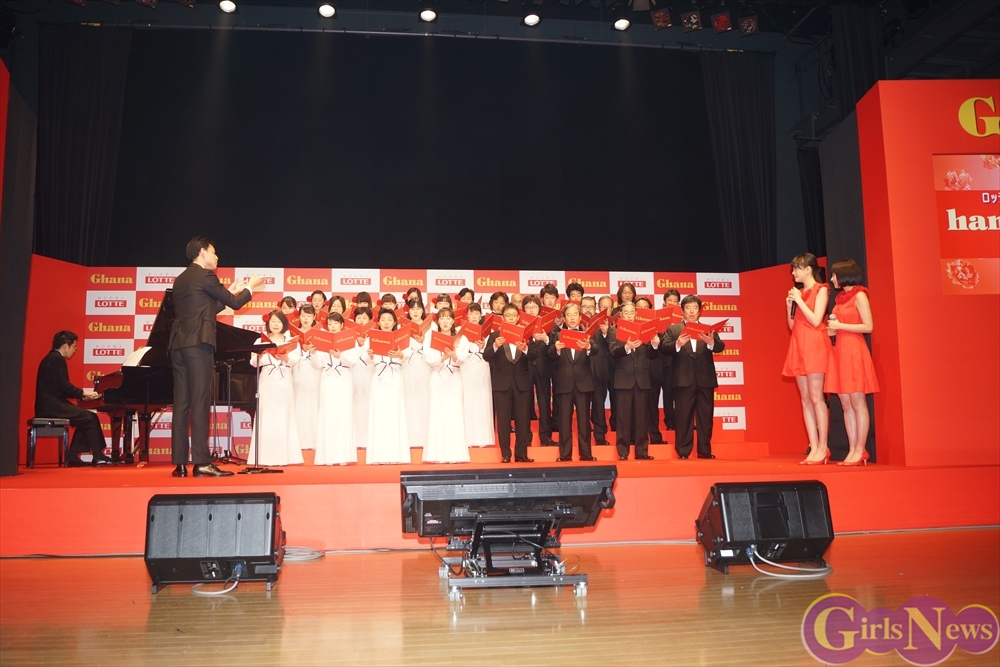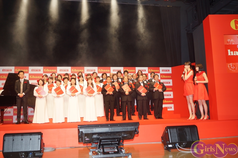そのサプライズプレゼントとは、東京混声合唱団が登場し、コブクロの「hana」を合唱。この「hana」の楽曲は「母の日ガーナ」のCMソングとしてコブクロの2人が作った楽曲。