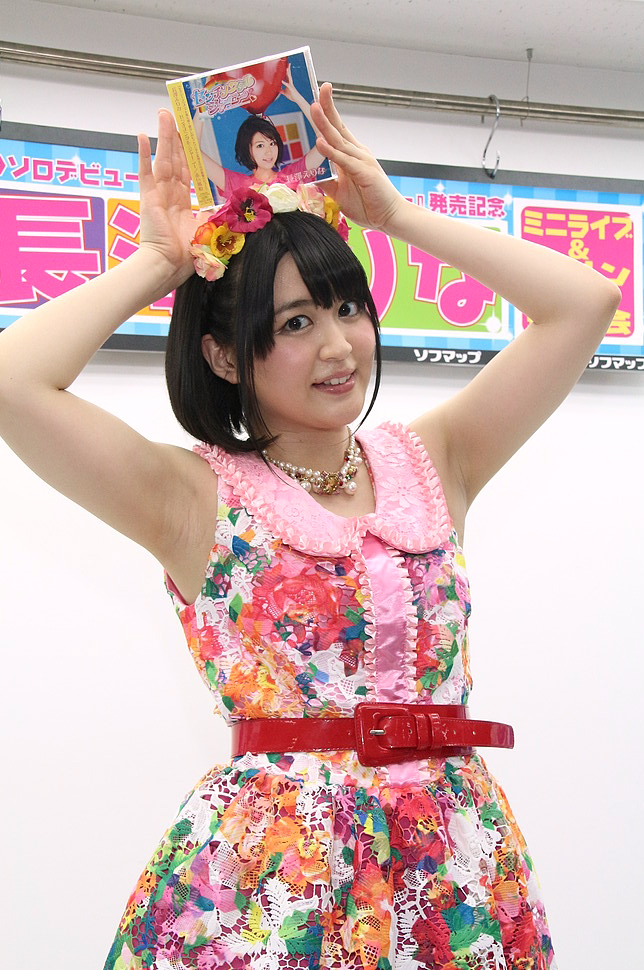 長澤えりなさんは、ピンクを貴重にした綺麗な花がらの衣装で登場し、「ドキドキして緊張が止まらない。」と声を上ずらせた。CDデビューを果たした感想を、「グループでステージに出た時は他の女優さんもいて心強かったですが、一人はとても緊張する。でも、子供の頃からモーニング娘さんやAKB48さんに憧れていたので、自分が真ん中に立って歌えるのは嬉しい。」と喜んでいた。