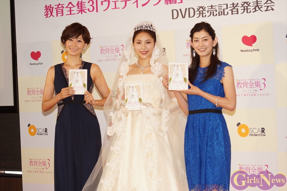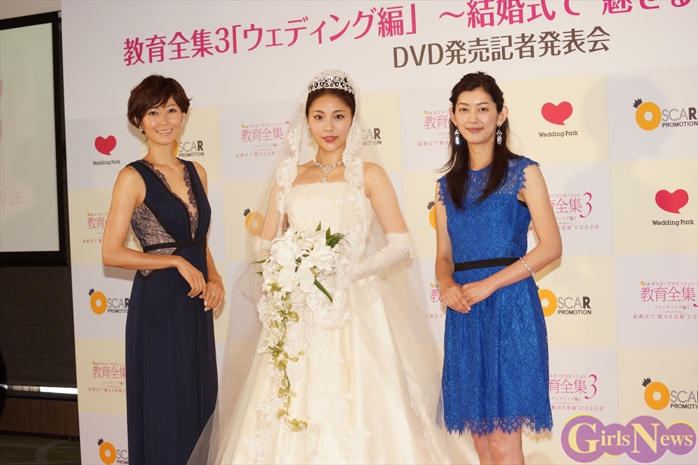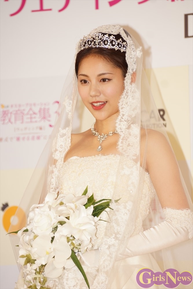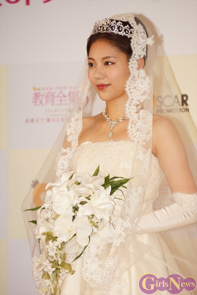 6月11日、オスカープロモーション教育全集3[ウェディング編] DVD発売記念発表会が都内で行われ、女優の水沢エレナさんがウェディングドレス姿を披露した。
