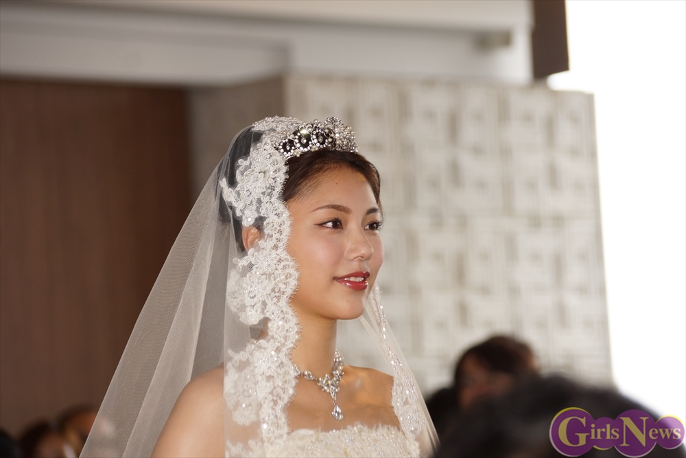 この日、桂由美さんがデザインしたウェディングドレス姿で登場した水沢エレナさんは「今日はウェディングドレスを着ての出席ということでドキドキしております。シルクで作られているので、美しさが一段と素敵だなと言う風に感じています。あとベールの繊細な刺繍もとても素敵だなと思いました。」と感想をコメント。