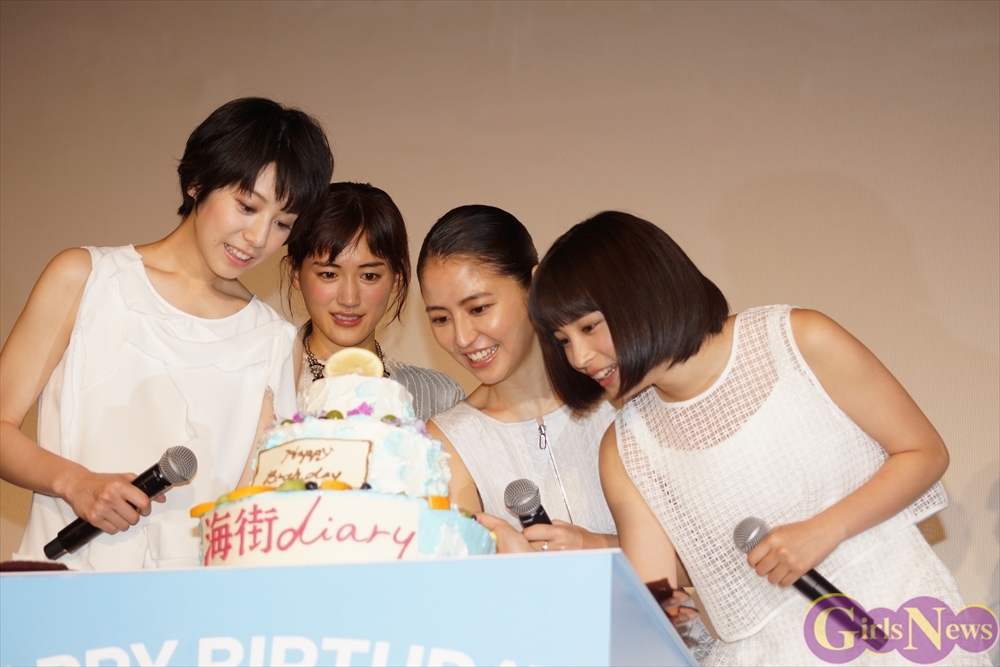 また、イベント後半では6月に誕生日を迎えた綾瀬はるかさん以外の4人に向け、なんと綾瀬はるかさん自らが制作した誕生日ケーキがサプライズで登場。もっとも、サプライズ発表の段取りを完全に綾瀬はるかさんが忘れてしまっており、壇上では劇中とは違った長女らしくない一面になってしまった。