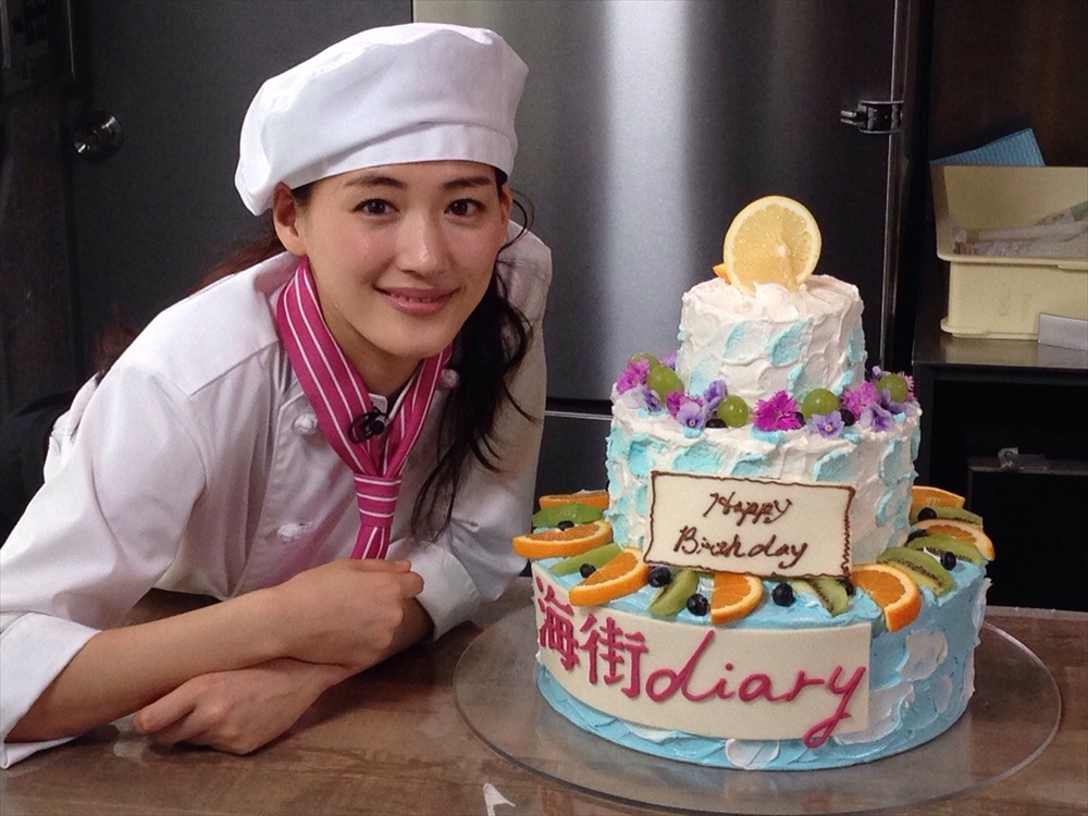 『海街』をイメージした水色のケーキには「おいしそうです」(広瀬すず)、「本当に作ったの?」(夏帆)、「本当にびっくり」(長澤まさみさん)と送られた”妹”たちからも喜びの声が挙がり、実際に試食へ。味を聞かれた綾瀬はるかさんは「ついさっき歯磨きして、歯磨き粉と混ざっちゃった感じ」とまたしても”綾瀬節”の回答。会場は大きな笑いに包まれた。