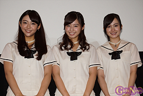 映画「白魔女学園 オワリトハジマリ」は、2013年9月に公開された「白魔女学園」の続編。前作に引き続き脚本は「けいおん!!」「ガールズ&パンツァー」で知られる吉田玲子さんが執筆し、メガホンも坂本浩一監督が握る。主演を務めるのはでんぱ組.inc。そして、彼女たちを取り巻く重要な女性キャストとして市道真央さん、小池里奈さん、山谷花純さんが登場するという構図だ。今回の初日舞台あいさつでは、そのキーパーソンとなる3人が制服姿で登場。撮影の裏話に花を咲かせた。