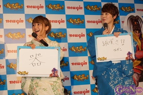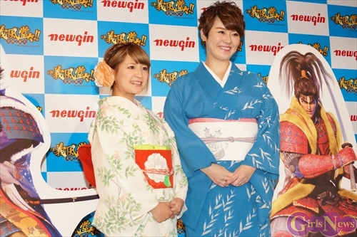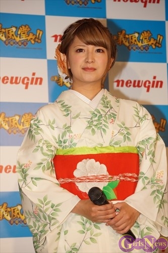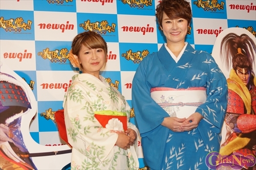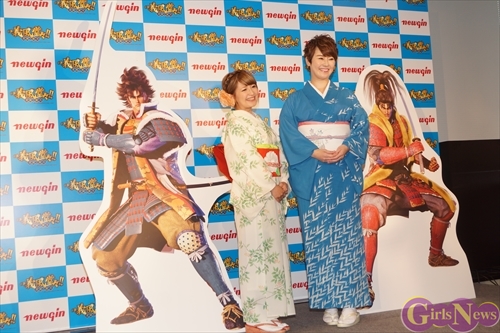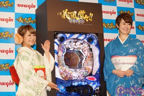 7月2日、ニューギン「CR義風堂々!! ~兼続と慶次~」プレス発表会が都内で行われ、モーニング娘。OGの矢口真里さんと女優の遠野なぎこさんが着物姿で登場した。
