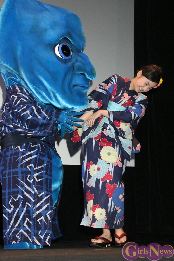 平祐奈さんは続いて、「青鬼をみてぶるーぶるーと震えてください。ブルーだけに。」と映画をアピールし、さらに「浴衣を着られて、ゆかったー!」とダジャレを連発して会場を笑わせていた。