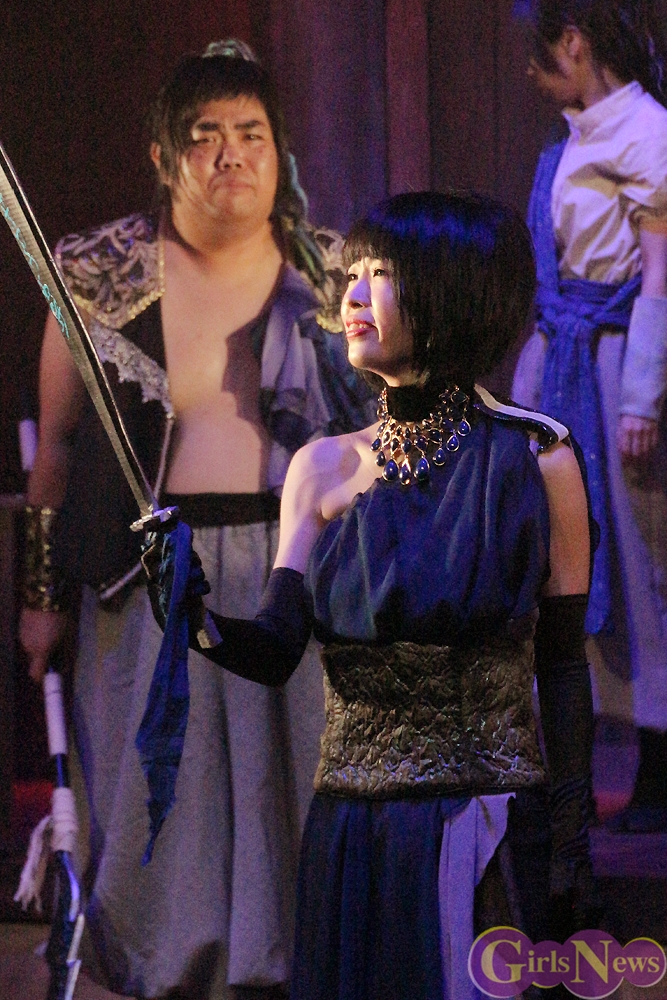 モンロンの恋人・ミンシャーを演じるのは宮島小百合さん。舞台でひときわ映える青い衣装が似合うヒロイン役で、アクションシーンも多い。殺気立ったキャラクターが多い中で、明るく優しいキャラクターが出ていて、舞台を和ませていた。