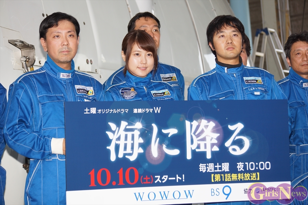 「しんかい6500(6K)」に乗った時について「本当に3人しか入れない小さな空間の中で、深海で8時間過ごしていく圧迫感というか、閉鎖感というか深雪もドラマの中で恐怖を感じたりするんですけど、すごく怖さを感じました。不思議な空間でした。」と特別な心境で演じた様子。
