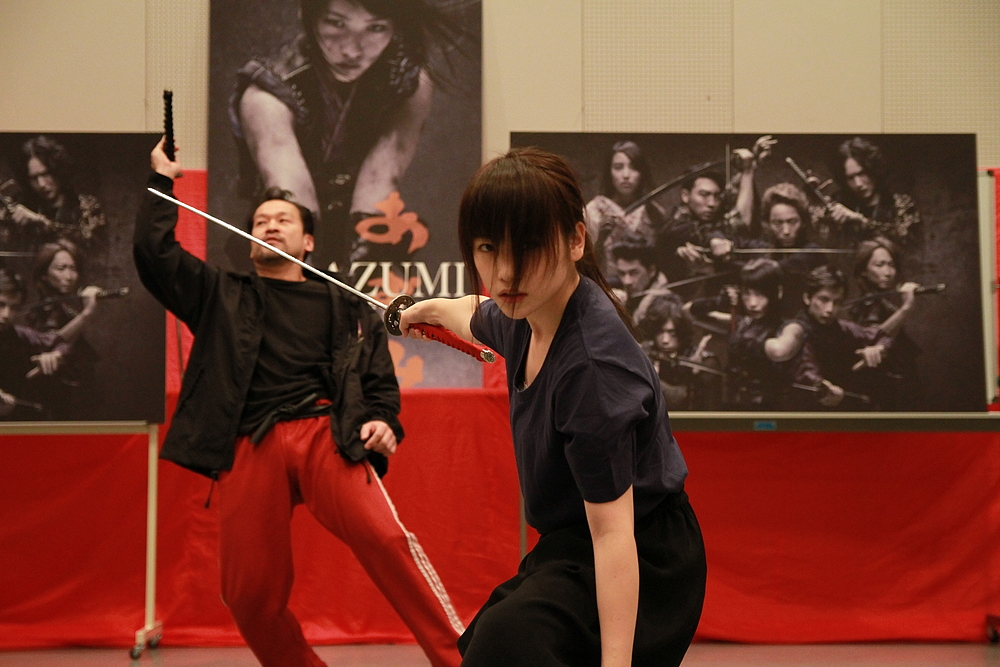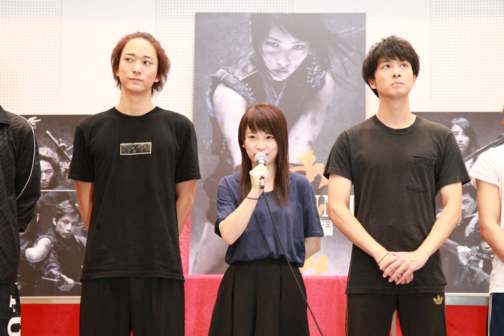 幼き頃より武術の鍛錬を受けた凄腕の刺客・あずみを演じる川栄李奈さんは「AKBを卒業して初めての舞台のお仕事なので、ホントに気持ちが入っています。みなさんといっしょにいい作品ができたら。」と意気込んだ。