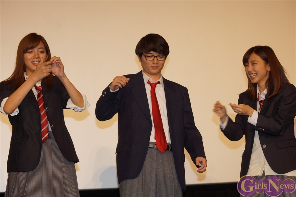 今回の撮影で一番頑張った点を訊ねられた池田エライザさんは「演技の経験が少なく、エスパーは三河弁だということで、三河弁を勉強すべく豊橋についた瞬間から駅のロータリーに2時間に居座ったりとか、町中をふらついたりとか、その土地の本物の三河弁を聞きにいったりとかして覚えるように頑張りました」と撮影を振り返った。そんな池田イライザさんと主人公を取り巻く真野恵里菜さんは「2年前にハロー!プロジェクトを卒業して、一番最初にいただいたお仕事がこれで、自分なりにはすごく気合が入っていて(役の)浅見紗英と向き合ってきたんですけど、ふたを開けるとパンチラだったりとかが広まってしまって悔しいなと思う部分もあったんですけど、でもこうして劇場版までたどり着いて、今日こうやって舞台挨拶を迎えられて、今が一番感動しています」とドラマ版からの思いを感慨深く語った。