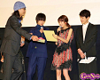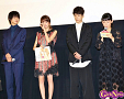 9月19日、映画『ヒロイン失格』の初日舞台挨拶が新宿ピカデリーで行われ、桐谷美玲さん、山﨑賢人さん、坂口健太郎さん福田彩乃さん、我妻三輪子さん、高橋メアリージュンさん、濱田マリさん、竹内力さん、英勉監督らが登壇した。