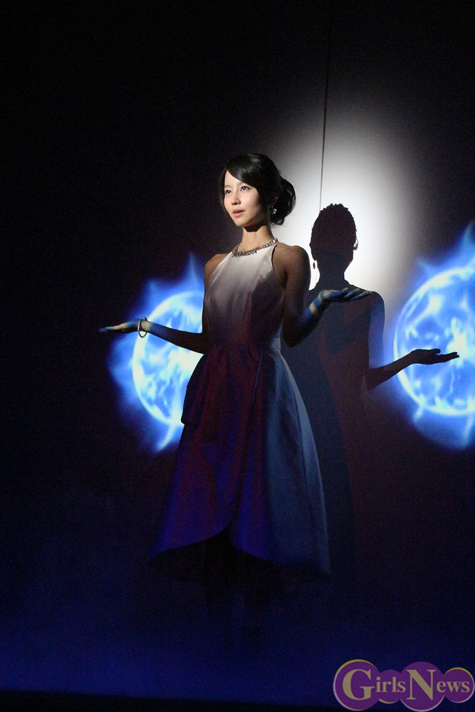 映画の吹き替えに初挑戦し、超能力を持つインビジブル・ウーマンを演じた堀北真希さんは、純白のドレスで現れ、映画にあるエネルギーフィールドの技を放つシーンを映像エフェクトで再現した。