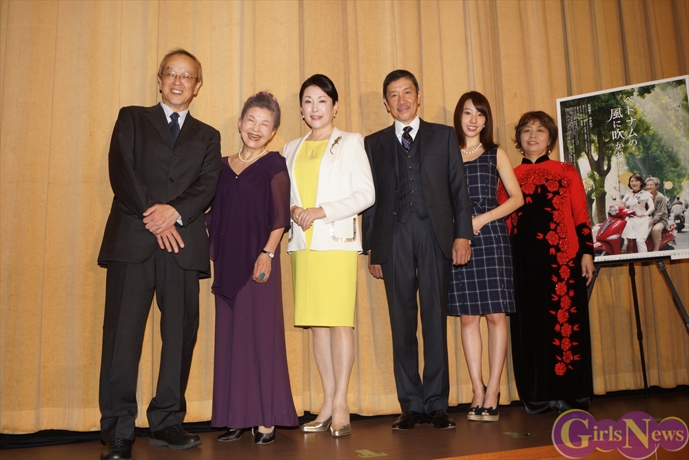 10月17日、映画『ベトナムの風に吹かれて』初日舞台挨拶が有楽町スバル座で行われ、松坂慶子、草村礼子、奥田瑛二、藤江れいな(NMB48)、原作者の小松みゆき、そして大森一樹監督が登壇した。
