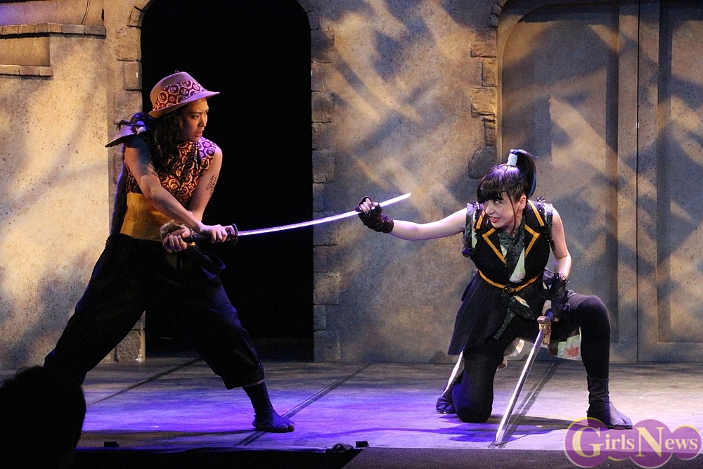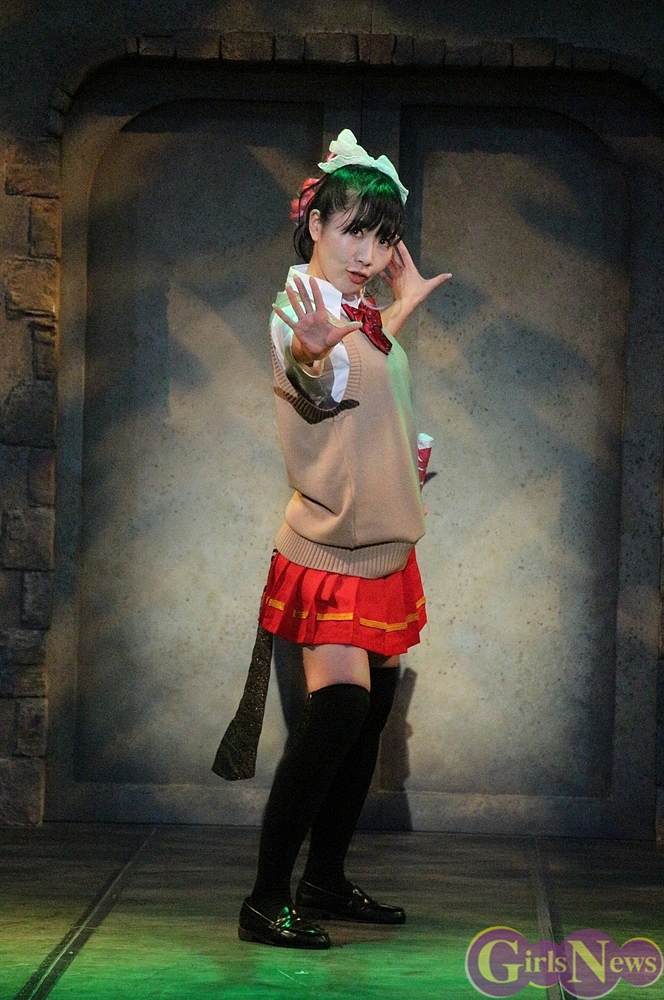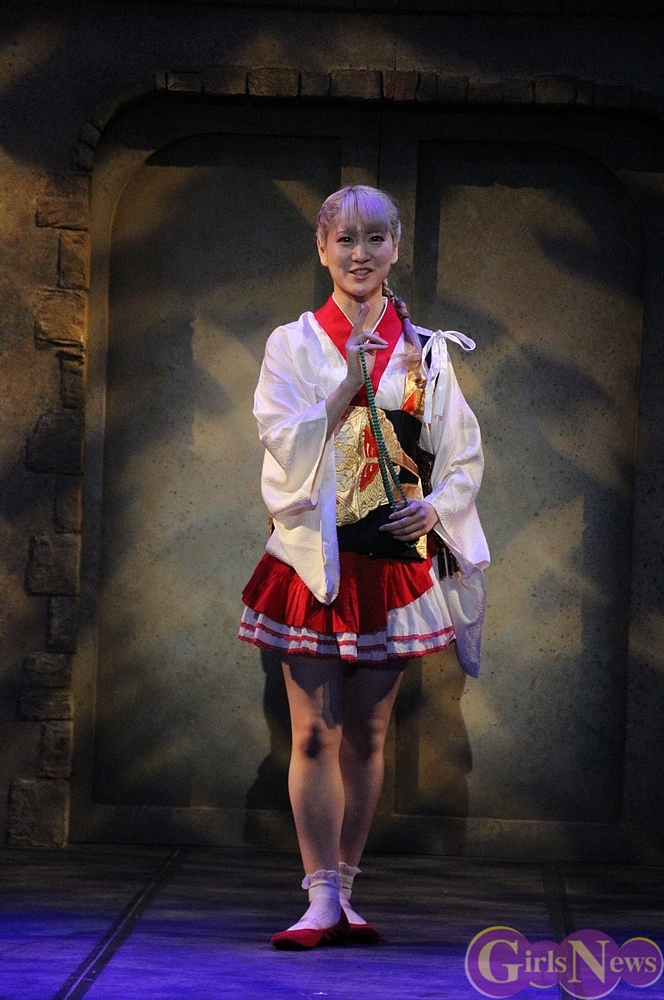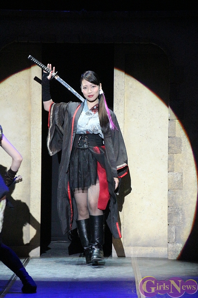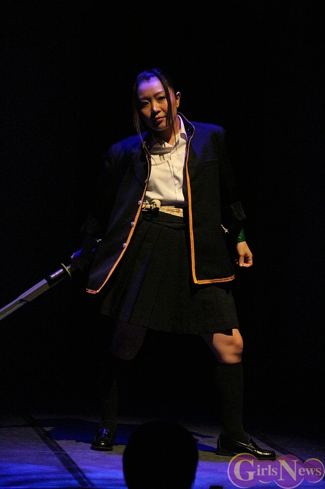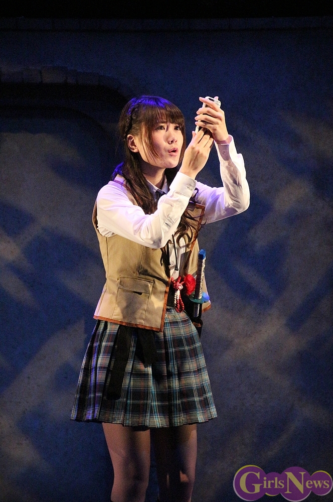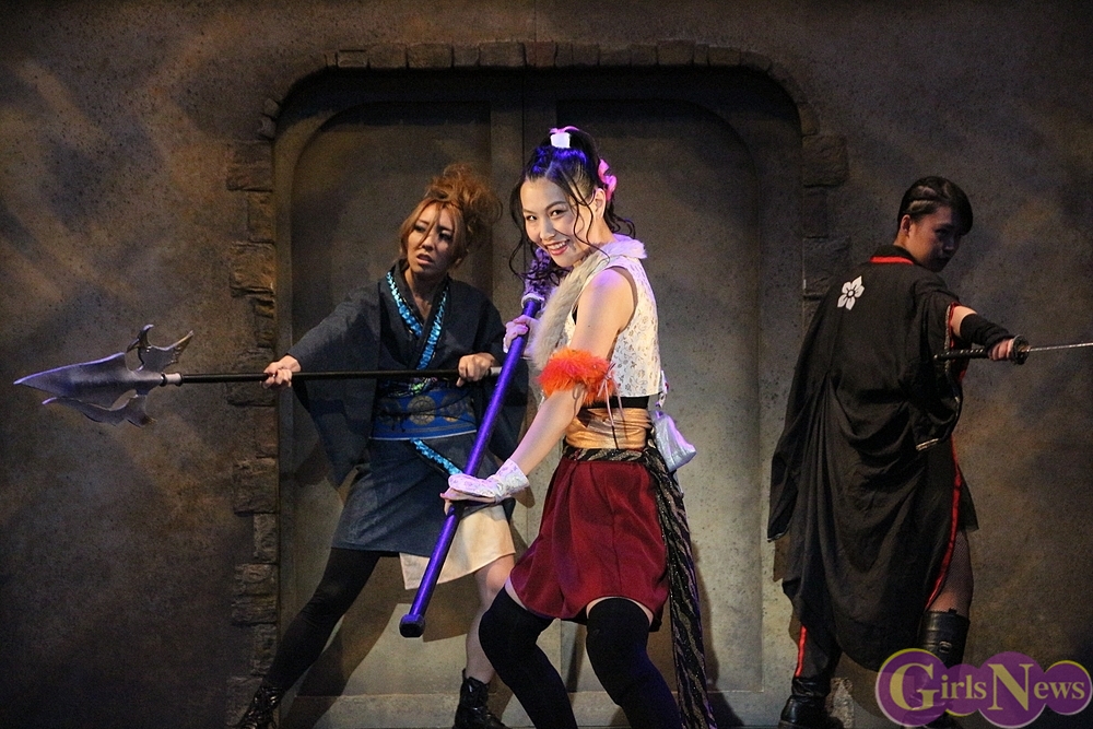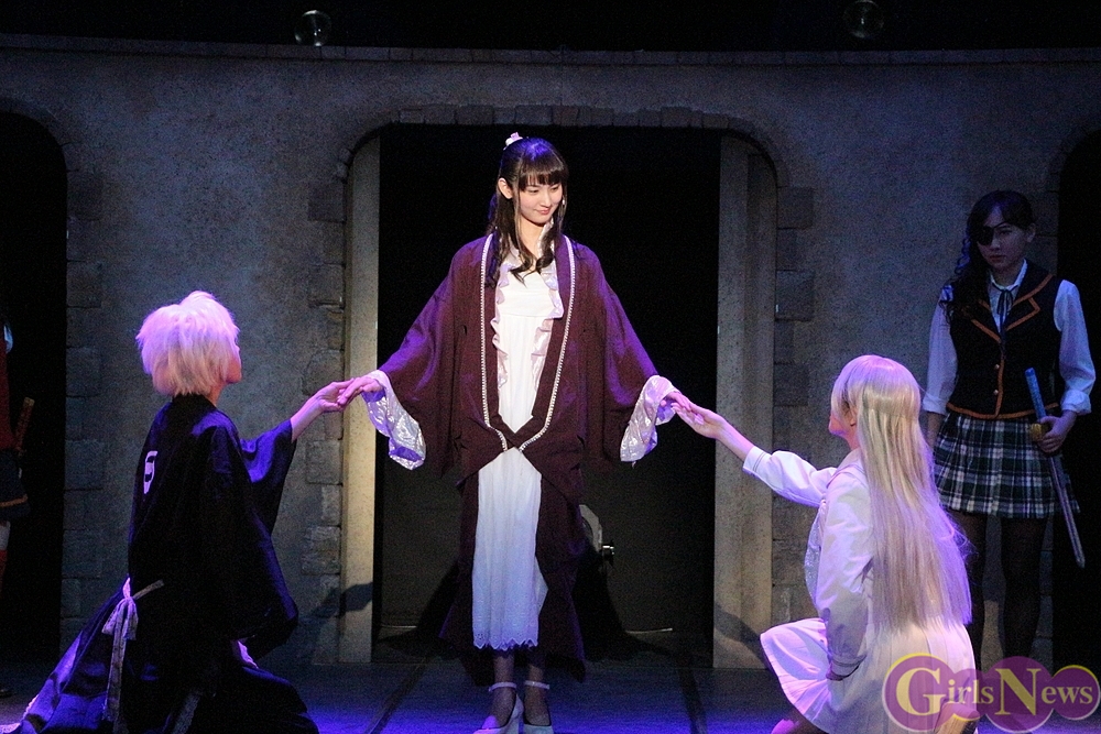 仁藤萌乃さんは「久しぶりにカワイイ女の子たちに囲まれて緊張してましたが、ようやくみんなと普通にしゃべれるようになりました。殺陣はとっても楽しいです。稽古中から眼帯をつけてやっていたので、すっかり慣れました。今まで経験をしたことがないことをやらせていただくことが本当にありがたいなと思っています。この経験をこれからに繋げていけたらと思います。」
