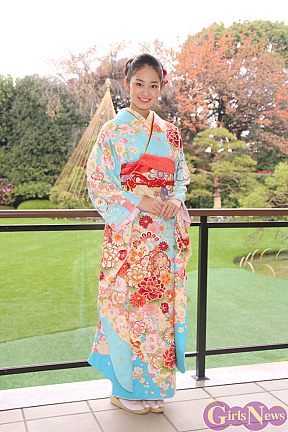 晴れ着撮影会に参加した感想を「参加できて嬉しい。同じ事務所でも先輩や後輩となかなか話をすることが出来ないので有り難い機会ですね。」と喜んだ。