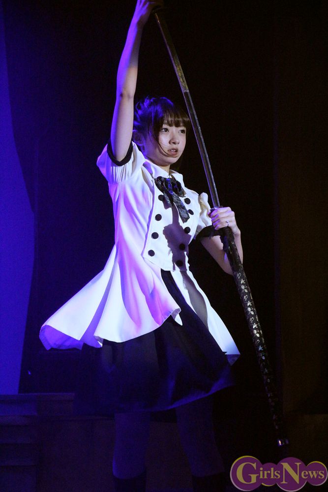 世界を守るために武器を少女精霊として転生させて闘う”フレイア”の新人戦士【安良木明里】を演じる茜屋日青海夏さんは「緊張しましたが最後まで集中力を皆んなで保って創りあげることが出来たので、千秋楽まで頑張っていける自信がつきました。初めての舞台でたくさん周りの方から教えていただいて、ここまで辿りつけました。とても感謝しています。」とホッとした表情を見せた。