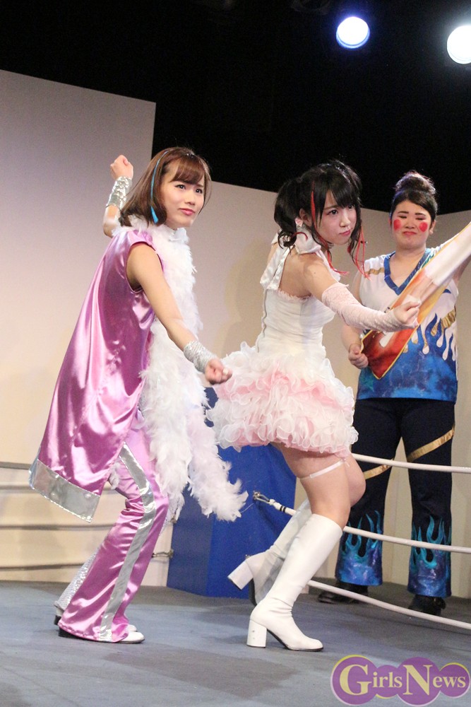 秋山「稽古でもそうなんですが、実況の橘花凛ちゃんがけっこうな天然さんなんですよ。”チャンピオンベルト”を”チャンピオンメダル”と言ったり、必殺技の”竜巻旋風裏拳”を”裏竜巻旋風拳”と言ったり、ときどき変なことを言っています。本番中も言ってるはずなので注目ですね」