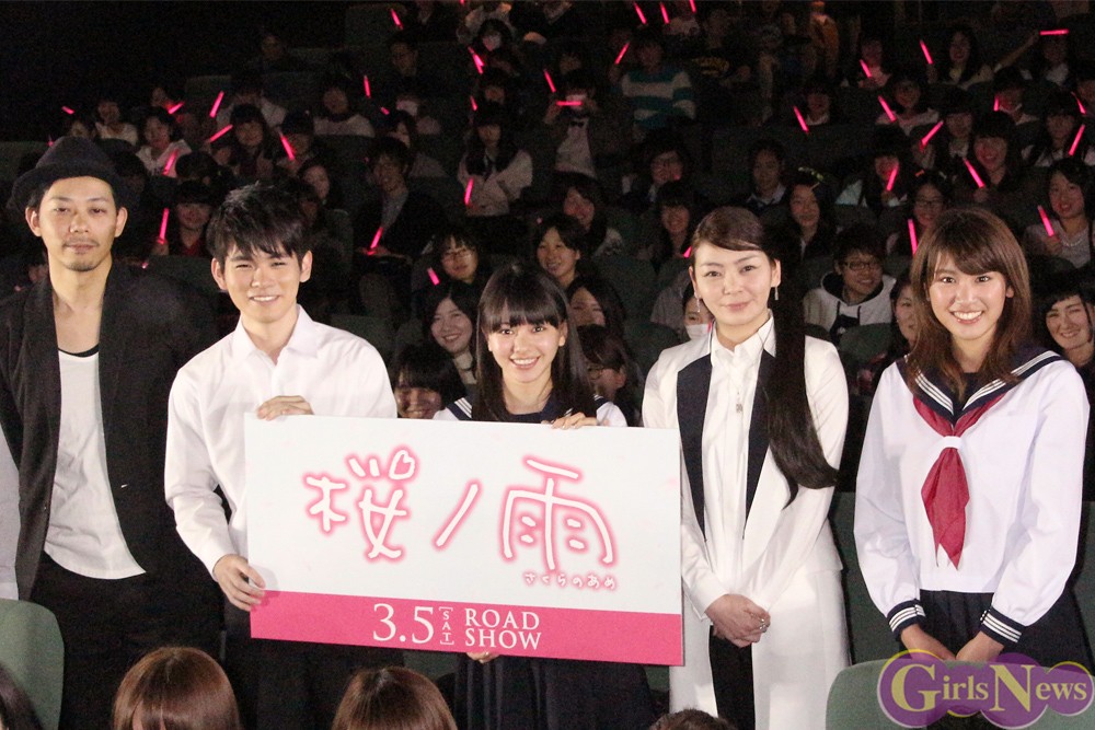 「JR SKI SKI」のCMなどで人気沸騰中の山本舞香が初主演する映画『桜ノ雨』の試写会が3日、シネマート新宿で行われ、共演の久松郁実、広田亮平、田畑智子、ウエダアツシ監督と共に出席した。