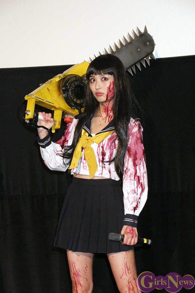 劇中のフンドシ姿が公開前から話題となっていた内田理央主演の映画『血まみれスケバンチェーンソー』が6日、ついに初日を迎え、ユナイテッド・シネマ豊洲にて行われた舞台挨拶に、共演した山地まり、佐藤聖羅、玉城裕規、そして監督の山口ヒロキと共に登壇した。
