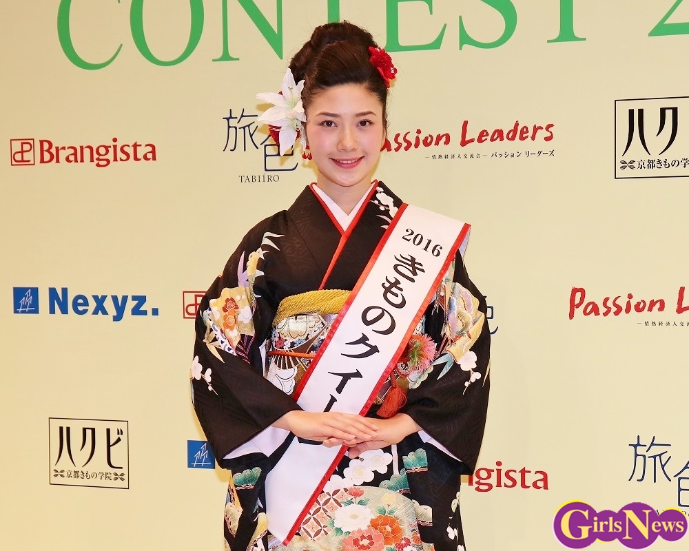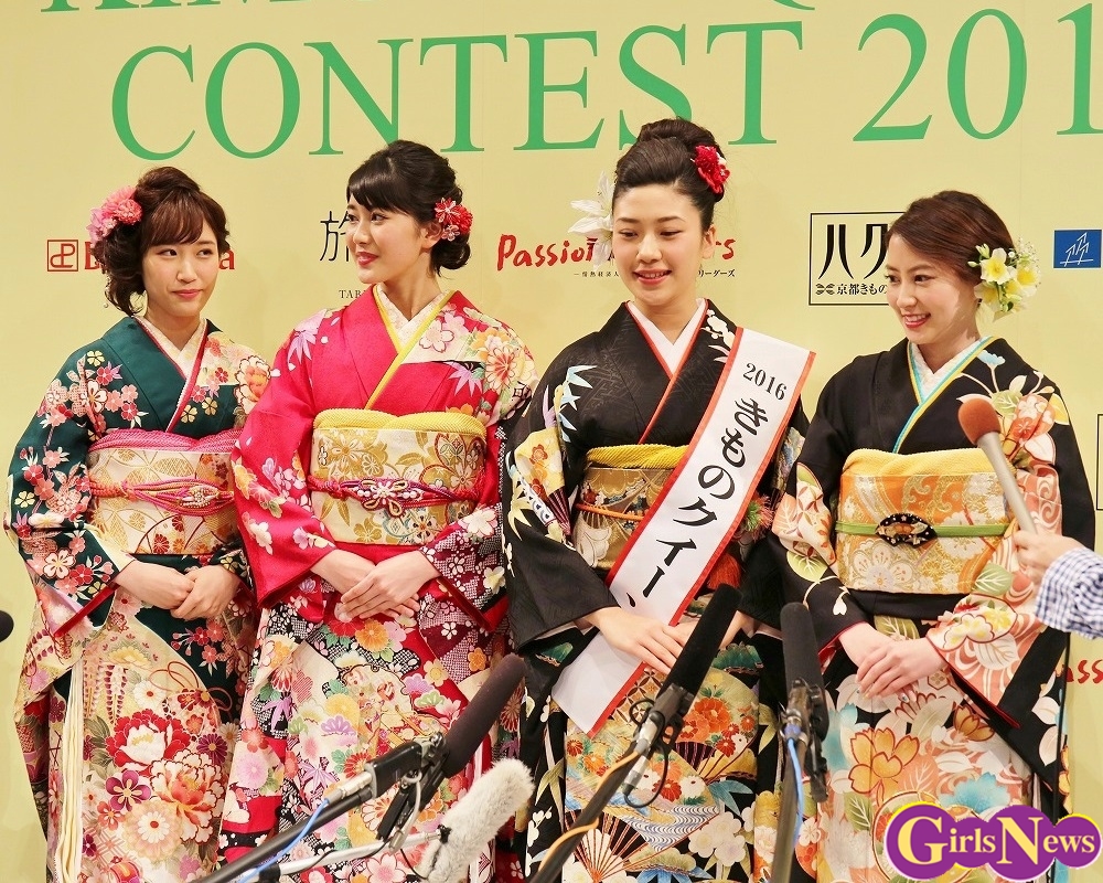 応募総数6150名の中から選ばれたのは東京都出身の松田和佳さん、グランプリである『2016きものクイーン』の栄冠を手にした。コンテストの後に小澤さん、河北さん、花岡さんと共に取材に応じた。