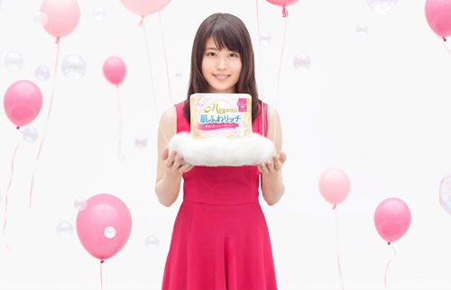 「やさしい素材とカタチで、敏感な肌にとてもうれしい」…有村さんがそう言うと、商品が雲に乗って風船でふわふわと空に向かって飛んでいく。そのうち風船が一つ二つとはずれ、有村さんや女の子たちが駆け寄ると、雲に乗った商品がゆっくりと落ち、有村さんがキャッチに成功する。そんな有村さんのいきいきとした笑顔や、やわらかな世界で繰り広げられるバラエティーに富んだからくり装置が見どころのCMとなっている。