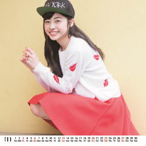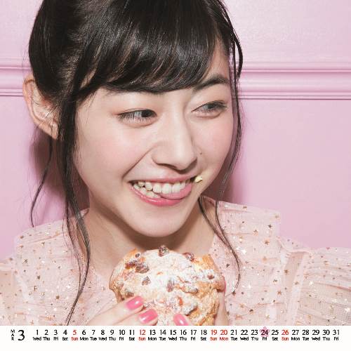 今回発売するカレンダーでは、本人お気に入りのカットでもある少しボーイッシュなファッションのカットや、シュークリームをくわえたキュートな仕草など、17歳から18歳へと成長していくかけがえのない時期に収められた、12ヵ月間毎月違った表情を楽しめる作品となっている。