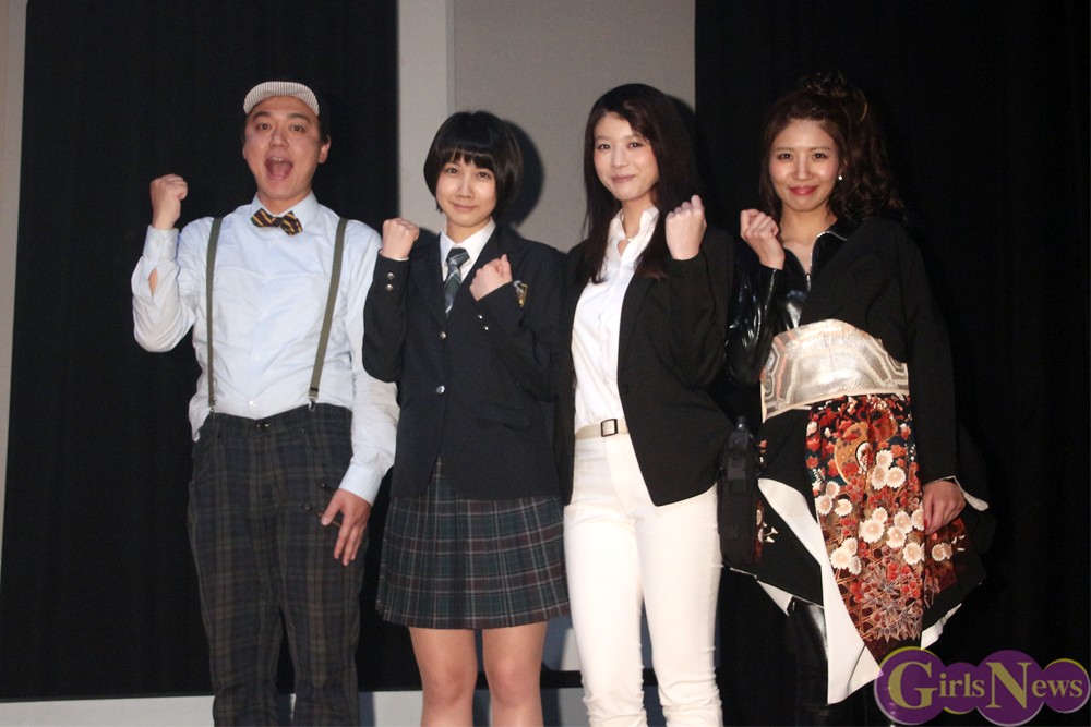 有村架純の妹分として注目を集める新進女優・松本穂香が、初舞台にして主演を務める舞台『ヨミガエラセ屋』が30日、新宿村LIVEで公演初日を迎え、それに先立って行なわれたゲネプロのあとに、松本穂香、馬場ふみか、木本夕貴、岡安章介(ななめ45°)が囲み取材に登壇した。