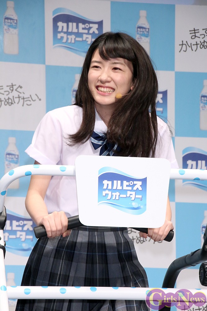 CMと同じ制服姿で登壇した永野さんは「小さい時から大好きだったカルピスウォーターのCMに出られると聞いて、すごく嬉しかった。歴代の先輩たちに負けないように頑張ろうと思います」と話し、「これからカルピスウォーターのCMキャラクターとして精一杯全力で駆け抜けますので、よろしくお願いします!」と意気込んだ。