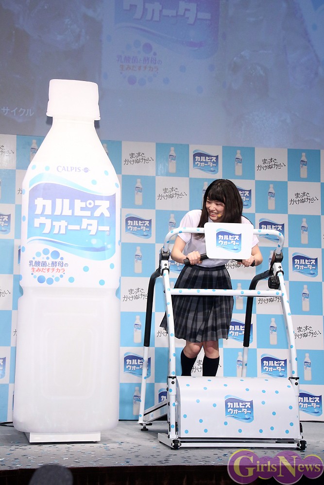会見ではその様子を再現すべく、ルームランナーが登場し、永野さんが走るのに合わせてカルピスのパネルが立ち上がるという演出がされた。全力疾走でみごとに立ったパネルの傍らで、長野さんは、冷たいカルピスウォーターをゴクゴクと飲んで、さわやかな笑顔を見せていた。