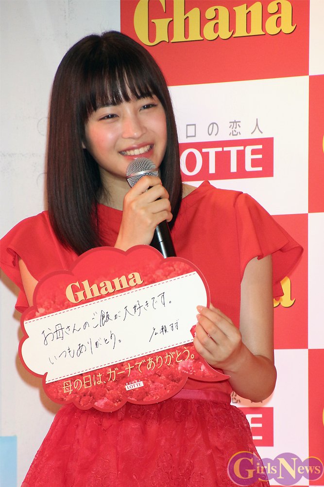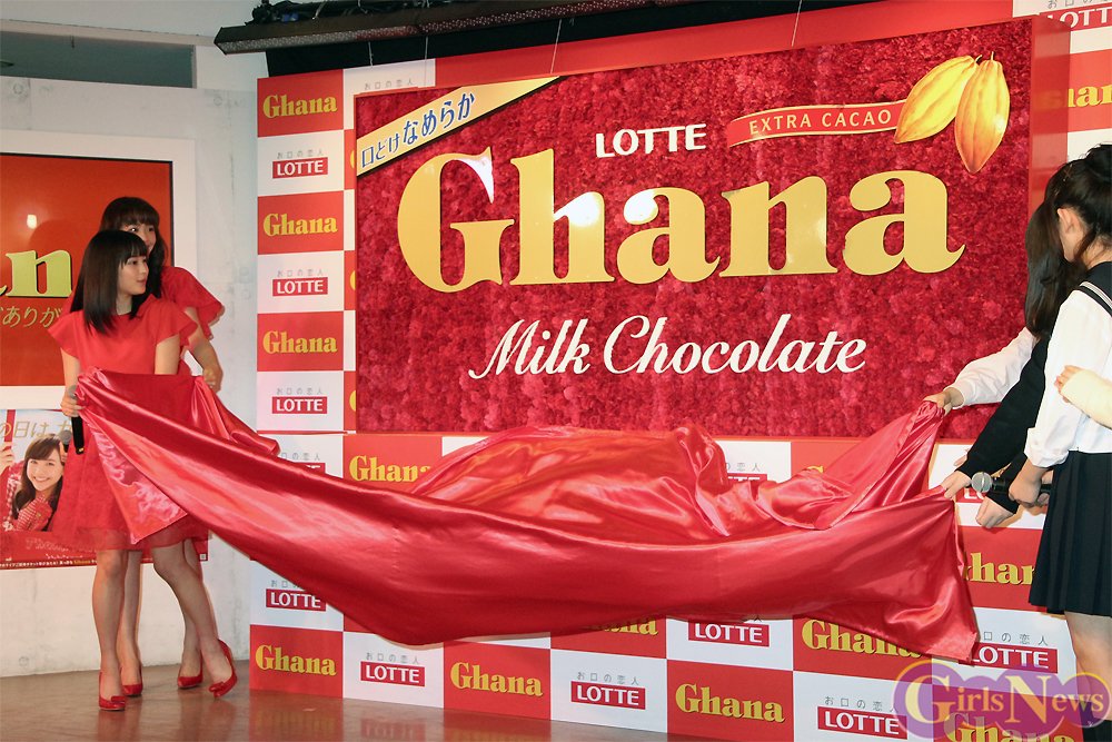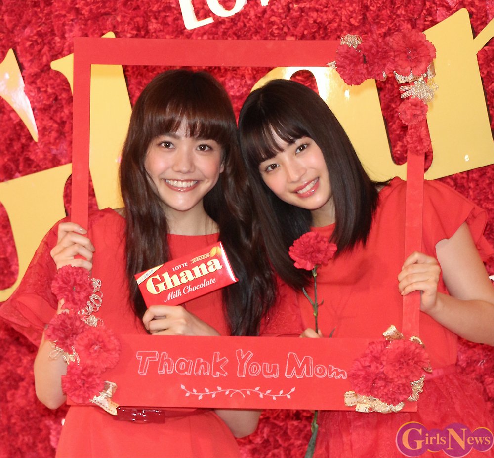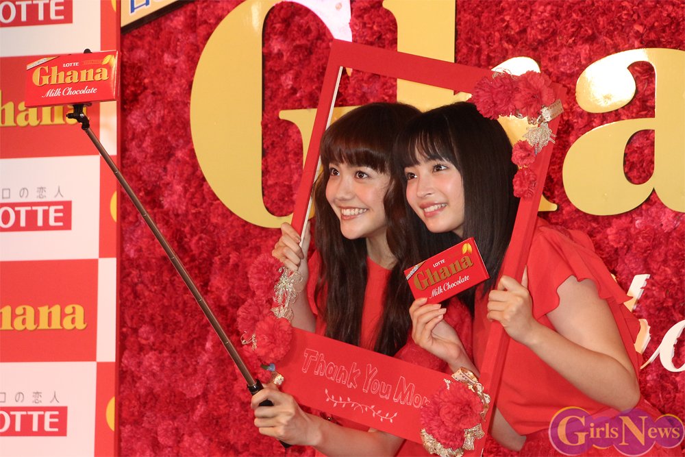 母の日を一週間後に控え「ロッテ 母の日ガーナ2016 メモリアルインフォラータお披露目イベント」が2日、竹下通りのドリームステーションJOL原宿で開催され、ガーナのCMに出演中の松井愛莉と広瀬すずが現役女子高生とトークショーなどを行った。