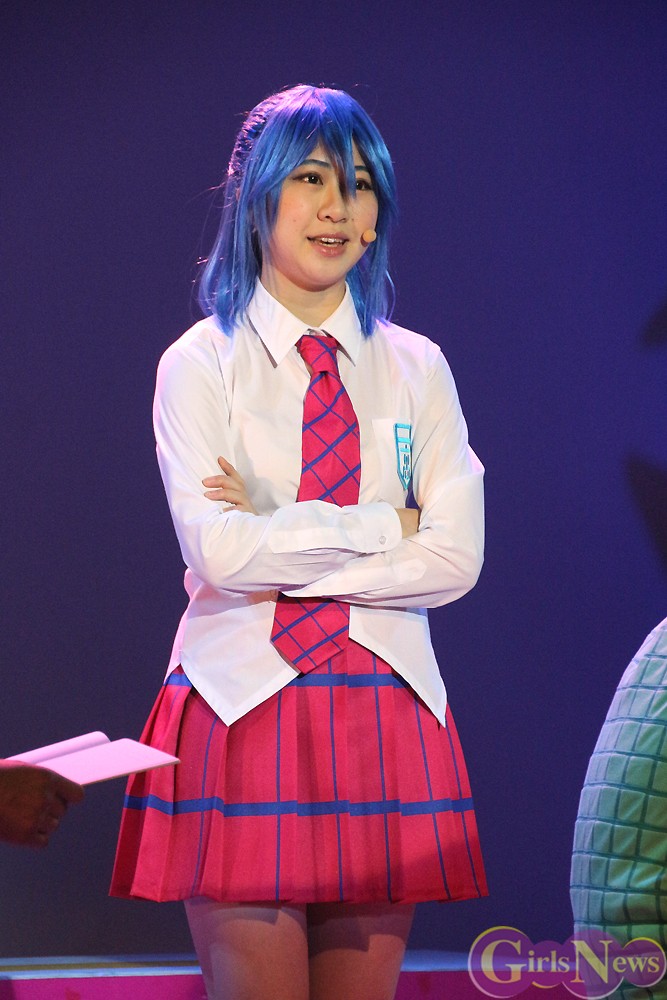 飛鳥凛さんは、「個性豊かなキャラクターばかりなので、もみくちゃにされながら皆んなで作り上げたのが楽しい。実際に衣装を付けて舞台に立った自分たちも楽しいので、お客さんの反応が楽しみです」とワクワクしていた。