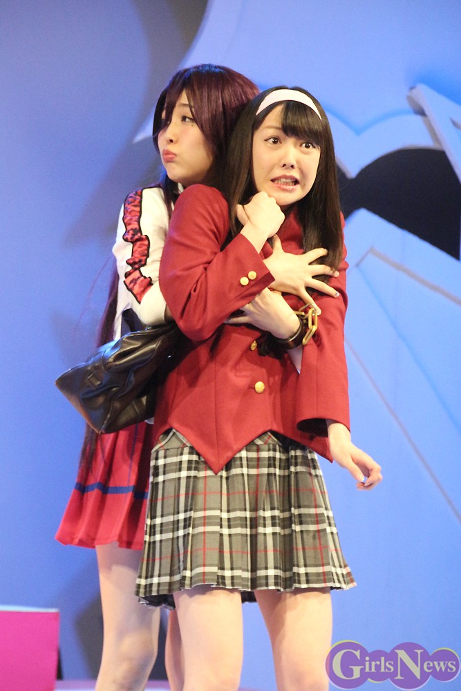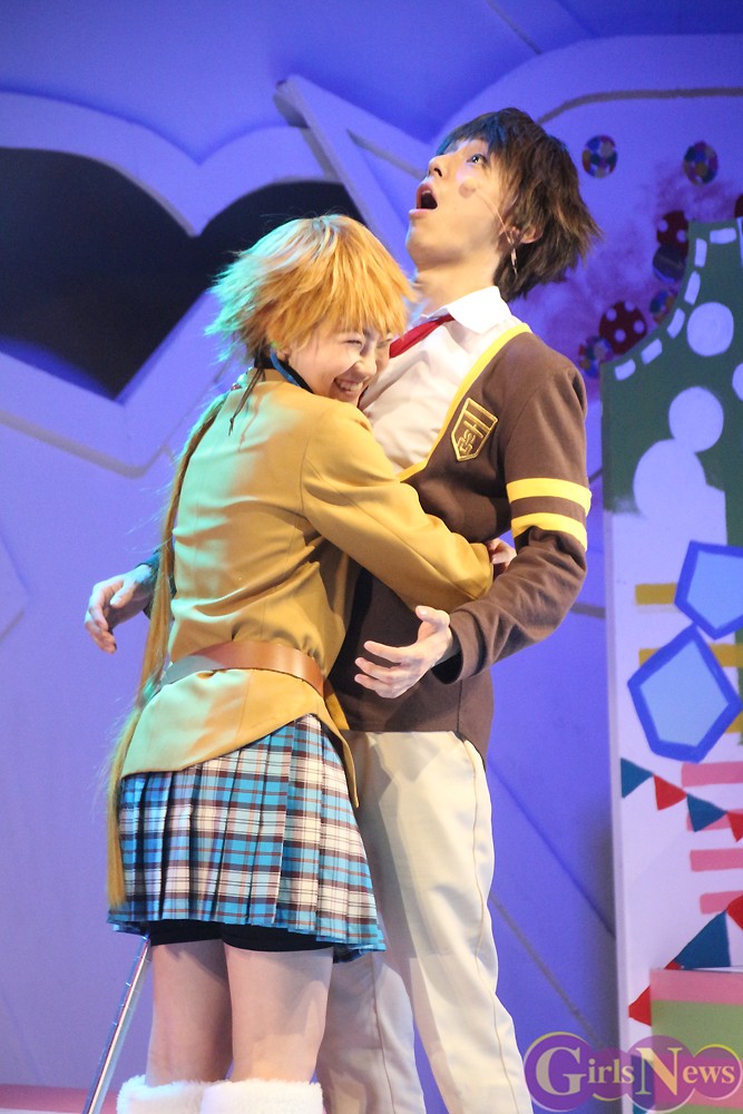 劇中で朝陽に抱きつくシーンについて、「最初の稽古では軽くぎゅっとしてたのが、壱岱さんから”もっとやっちゃえ!”と言われてドキドキしました。でも、最近は慣れて思い切りやってます。本番では大島さんのファンの方も観てらっしゃるので緊張しますが”この時だけはゴメンナサイ”という感じです」と照れていた。