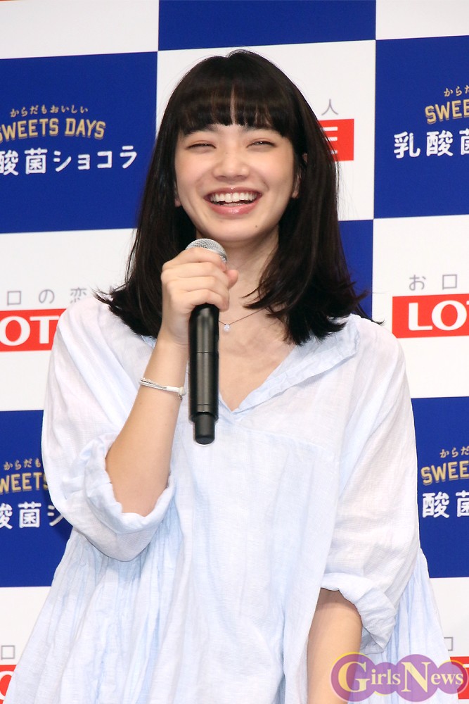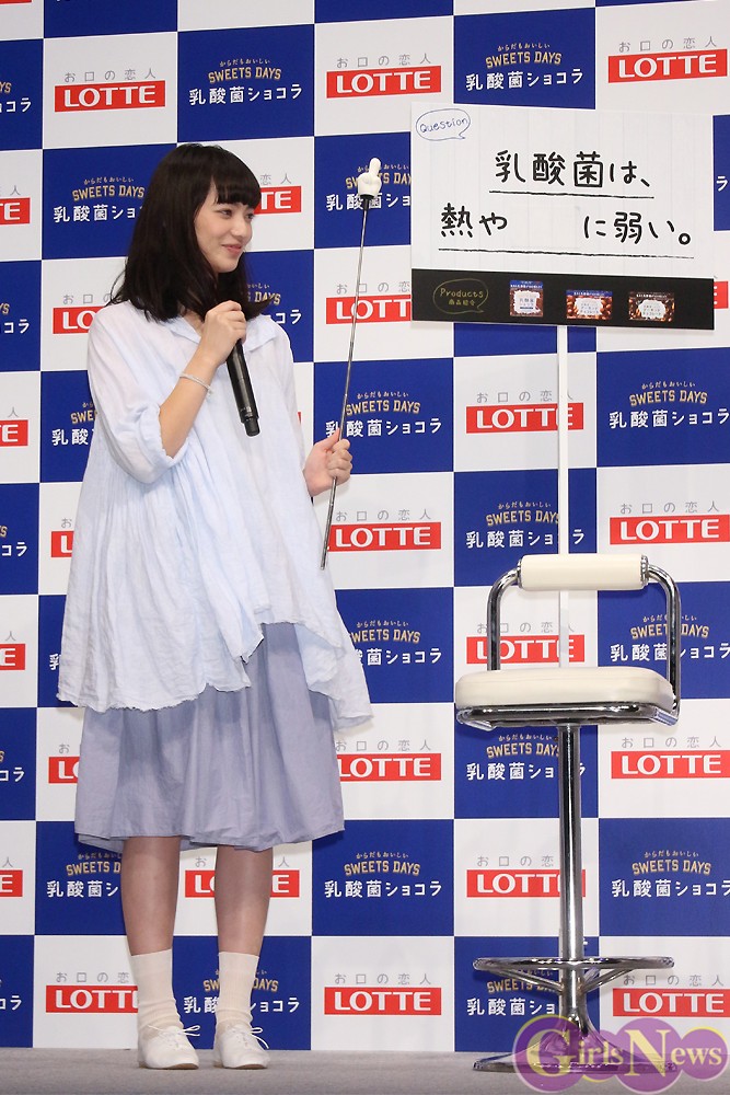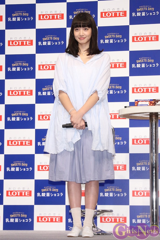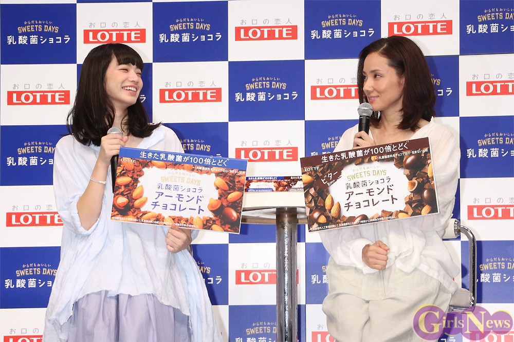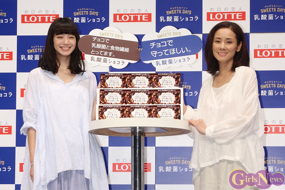 女優の小松菜奈さんが3日、都内で行われた『ロッテ乳酸菌ショコラ アーモンドチョコレートビター』の商品発表会に、同商品の新CMで共演している吉田羊さんと共に出席した。