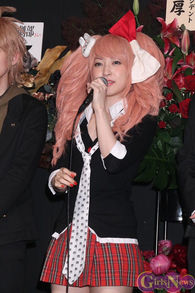 さらに 「そういうガチなファンなので、実際に自分が江ノ島盾子という存在になれるということは非常に特別で、私にとってはシンデレラストーリーをいただいたような感じです。だからこそ、責任をもってやらなければいけないと思いますし、ファンとして最後までやっていきたいです」と思い入れを明かした。