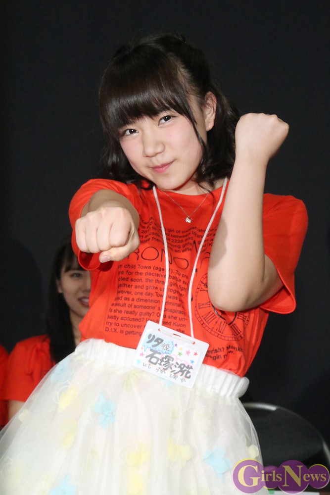 石塚汐花(時空刑事リタ役)「私の性格と正反対のクールなキャラなので役作りに悩んだのですが、周りの方からアドバイスをしてもらって、すごくかっこよく演じられていると思います。アクションでは私の得意なアクロバットを取り入れているので、必殺技のシーンが見どころになってます」