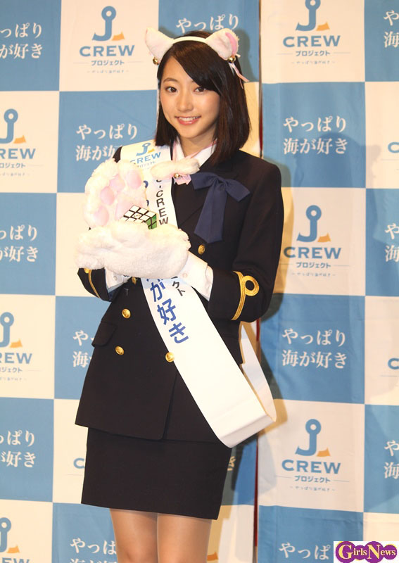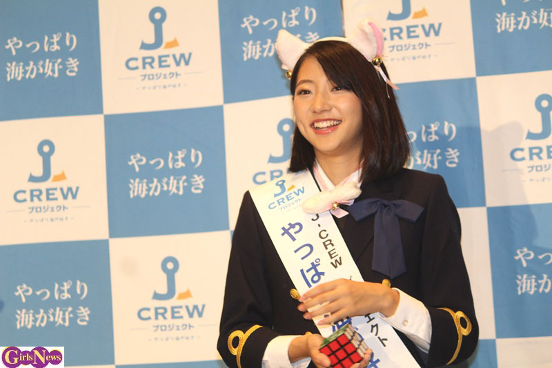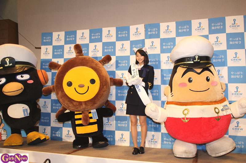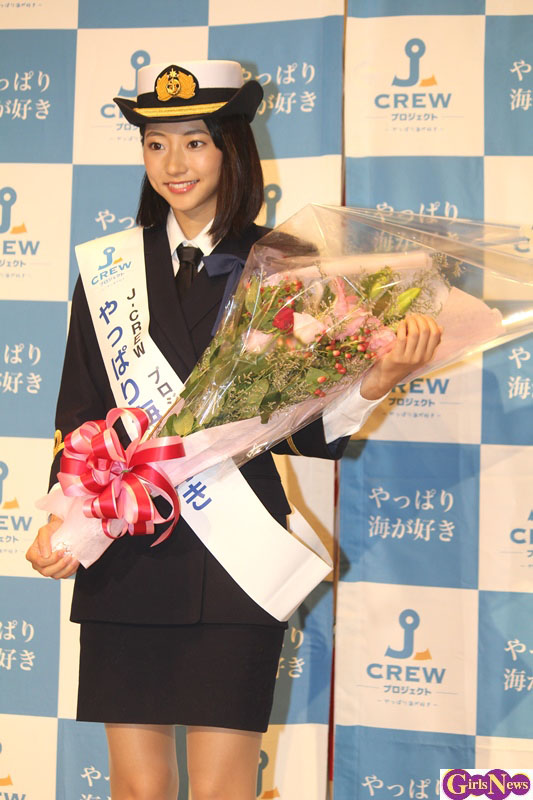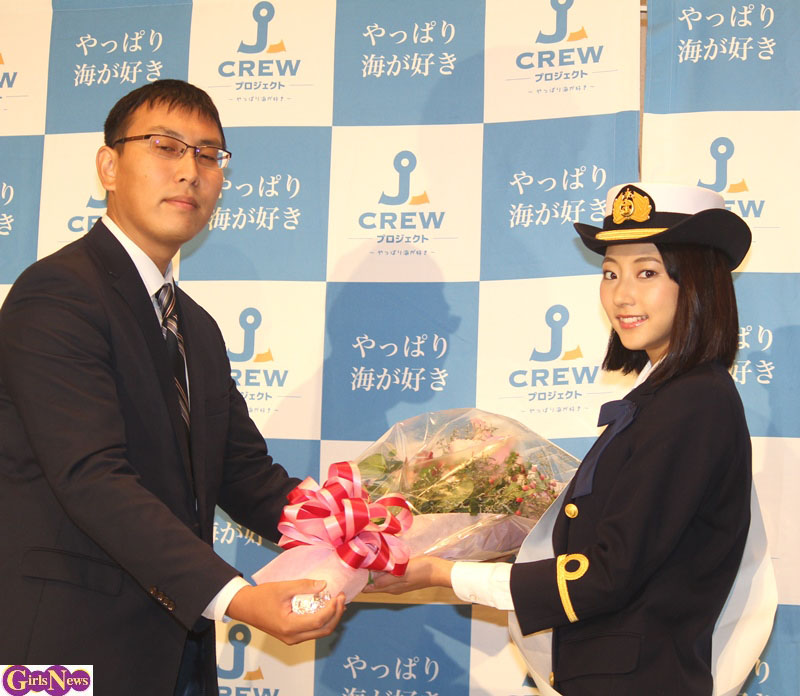 「J-CREWプロジェクト」は全日本海員組合(略称JSU)と国際船員労務協会(略称IMMAJ)が若者に船員の魅力を伝え、外航日本人船員の人材確保を支援するプロジェクト。その応援大使に選ばれた武田さんは船員の制服姿で登場。「思ったより可愛い」とお気に入りの様子で、「私は海が大好きなので応援大使に選ばれてすごくうれしいです」と喜びを表した。