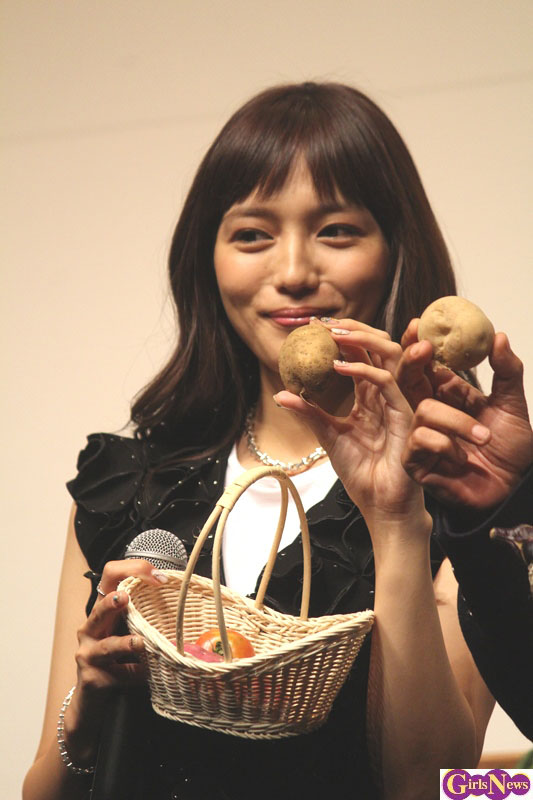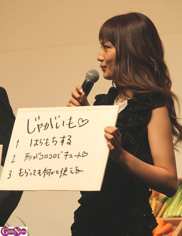 この日は、映画の内容にちなみ、「野菜」を用いた心理テストで恋愛診断も実施。ステージに用意された棚の中の野菜から、「気になる異性に野菜を3つプレゼントするとしたら」というテーマで、キャストたちは3番目に選んだ野菜と、その野菜を表す形容詞をフリップに書いて発表。