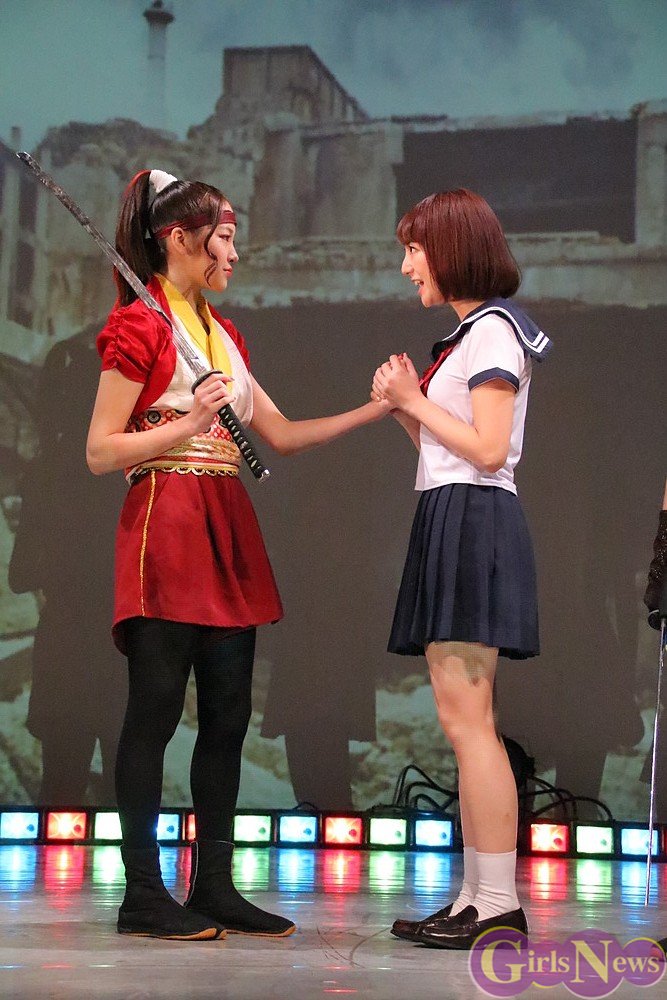アリスインプロジェクト(以下アリス) の舞台『戦国降臨ガール インターナショナル 東京』が7日、築地ブディストホールにて公演初日を迎えた。これに先立ってマスコミら関係者に公開されたゲネプロで、キャストの玉川来夢、尻無浜冴美、遠藤瑠香、松岡ななせ、AKANE(福田朱子)、加藤智子らが作品への意気込みをアピールした。