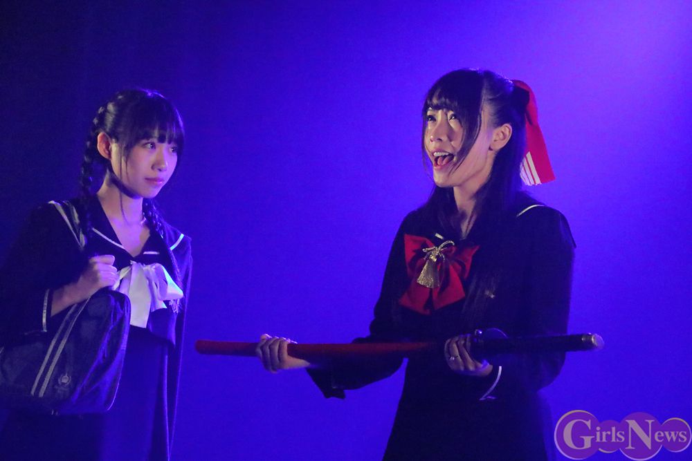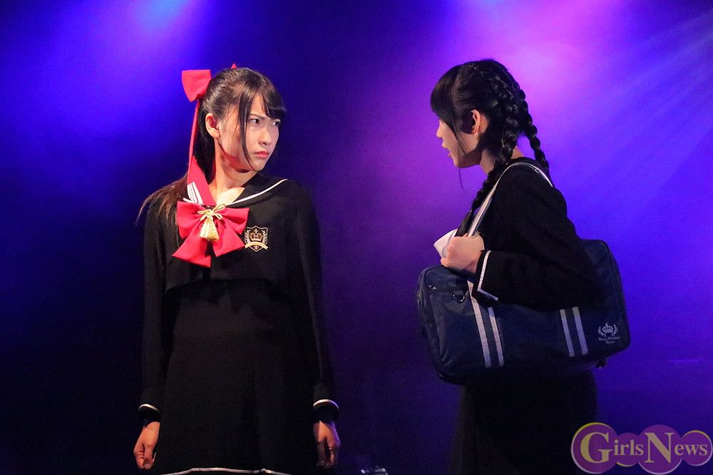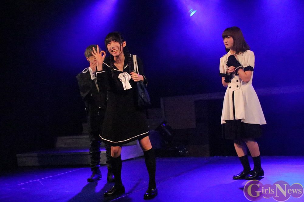 また、今回が初舞台となる横野すみれさんは、明里を友だちとして慕う女子高生・草間玲を演じている。iDOL Streetのストリート生として活動する横野さんは、10月から隔週月曜日にAKIBAカルチャーズ劇場にて行われている「すとゅらみっChu SS 定期公演」にも参加している。「2日前の月曜日に秋葉原で公演があったので土日から東京で練習でした。舞台の稽古も大詰めだったのに休まなければならなかったのが大変でしたが、移動中の新幹線で必死に台本を叩き込んでなんとか今日を迎えました。この舞台はもちろん、AKIBAカルチャーズ劇場での公演も頑張っているのでそちらも応援してくれたら」とアピールしていた。