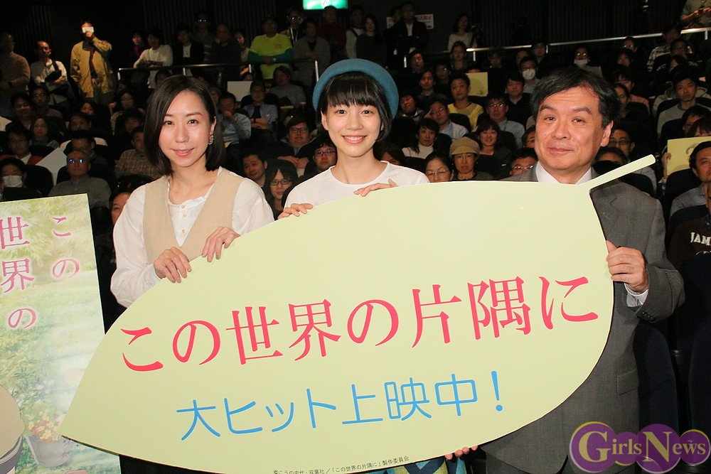 さらに隣にいた片渕監督に「監督も生活の才能がないですよね?」と話題を振って客席の笑いを誘った。のんさんは「お仕事に集中して食事をされなかったり、大丈夫かなと心配してます」と監督の体を気遣っていた。