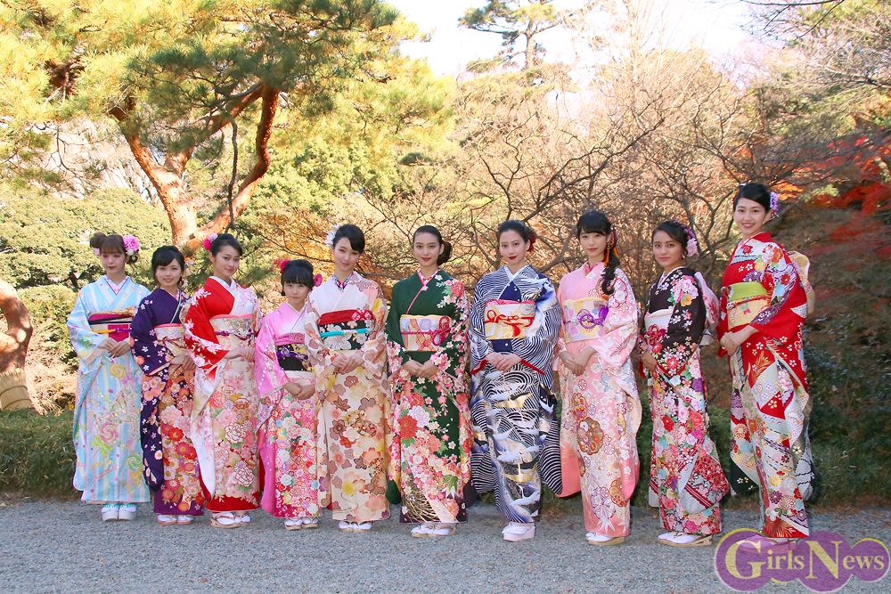 2017年新春に向け、武井咲、剛力彩芽、河北麻友子らオスカープロモーション所属の若手タレント総勢10名が、昨年12月8日に港区・白金台の八芳園で開催された晴れ着撮影会で艶やかな振袖姿を披露した。