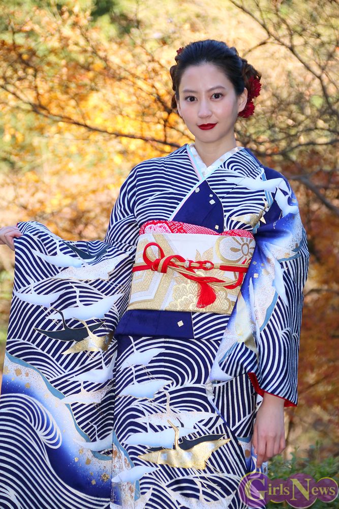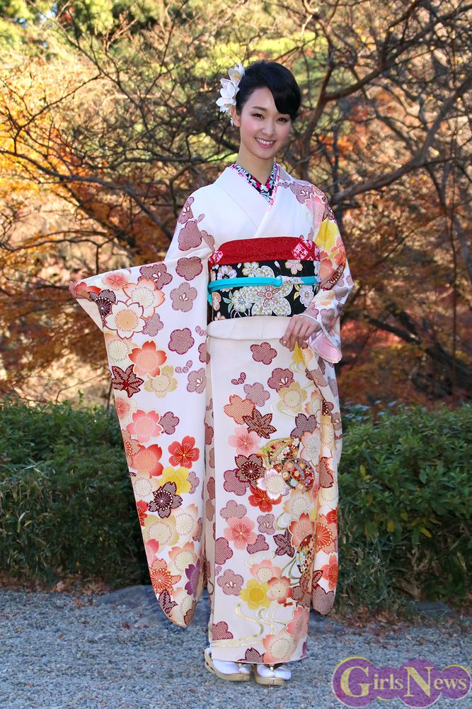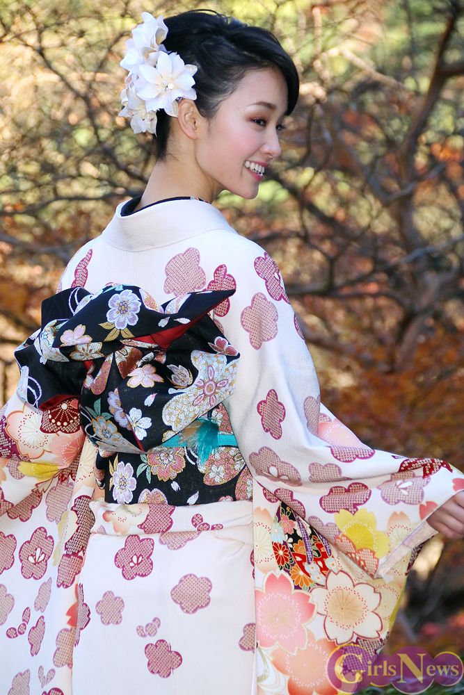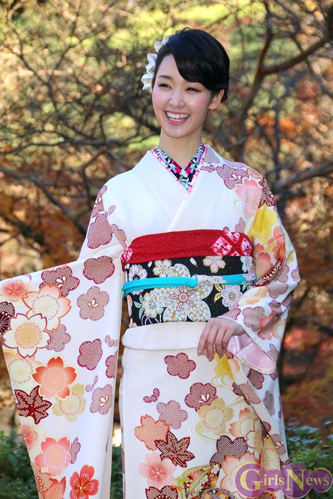 河北麻友子さんは「この中では一番渋めで大人びていて新鮮です」と着物を気に入った様子だったが、着物を着て出かけたい場所を尋ねられると、「締め付けられて動くのが不自由になるので、この場だけに収めておきたいです」と本音を漏らして場を和ませた。